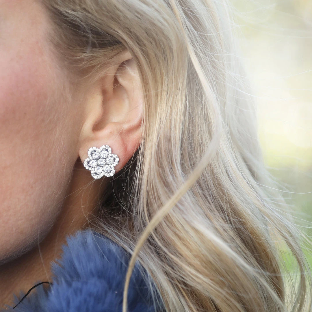 14k vermeil pave flower stud. A chic and modern design with our classic and bestselling flower motif.