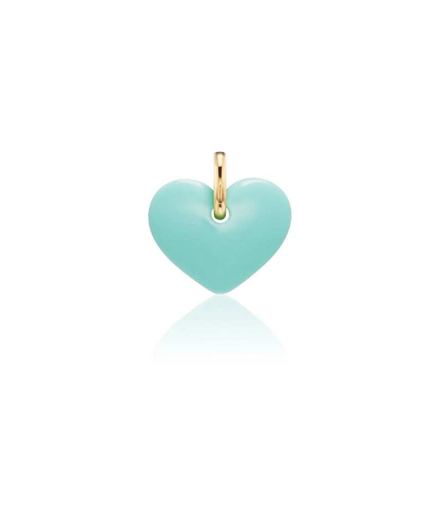 Our signature heart pendant adds a fun pop of color. It has a beautiful 18-karat yellow gold bail, which opens to clip into any chainlink size. It is the perfect sized pendant for a short or long or delicate or substantial necklace chain. Oui, oui, it is a versatile and wonderful piece!If your size is not available, we are able to place a special order. Lead time is approximately 3-4 weeks.