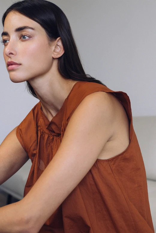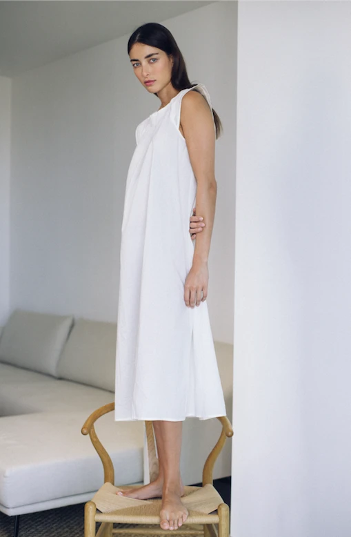 This A-line nightgown cuts away from the body and has an airy feel to it. Beautiful tucks accentuate the shoulders and the elasticized back panel gives it mobility. Chloe will keep you cool through the night.
