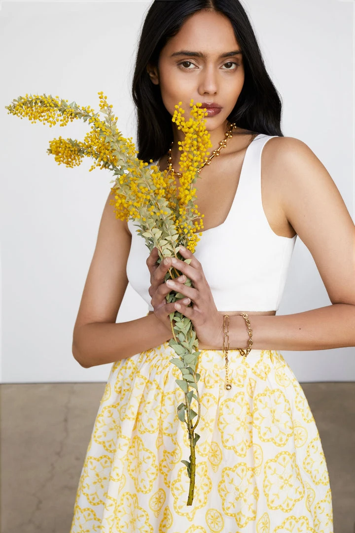 There’s sun-shiny optimism from inch-to-inch of our custom cotton eyelet Lemon embroidery. The Chloe is a playful, swishing full skirt with a stretch-cotton waistband that’s easy to slip on and comfortable to wear. Chloe features pockets for storing all your mementos, and scallops along the hem. Made in Los Angeles.