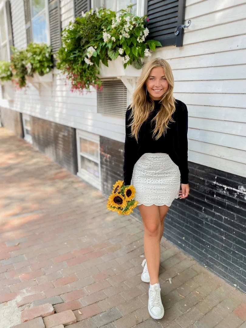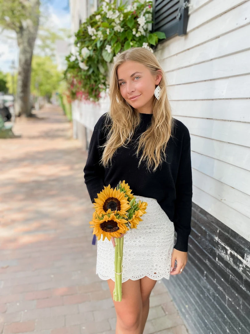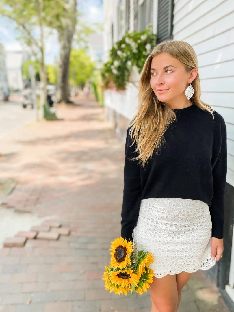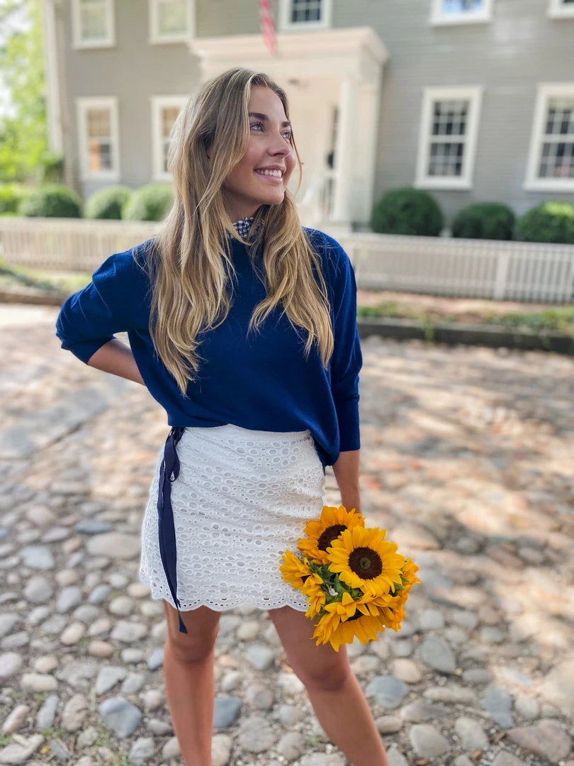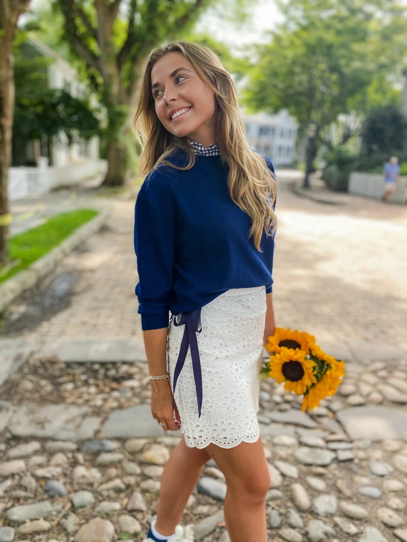 A chic, feminine silhouette to take you from day to night. The Emma is a 100% cotton eyelet embroidered high-waist fitted skirt with scalloped hem. Emma includes a cotton tie at the hip plus concealed zip fastening at the side seam. Made in Los Angeles.