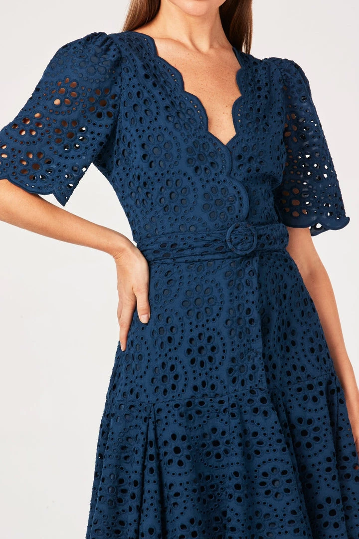 Channel your inner Bardot in the ‘60s vintage-inspired Grace wrap dress. Offers an interior tie closure and feminine, flattering silhouette that moves beautifully. Features custom covered, removable belt, sleeve heads, and scalloped neckline. Designed, dyed, and sewn in Los Angeles.