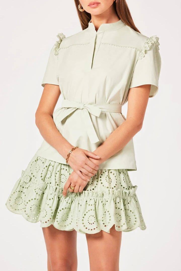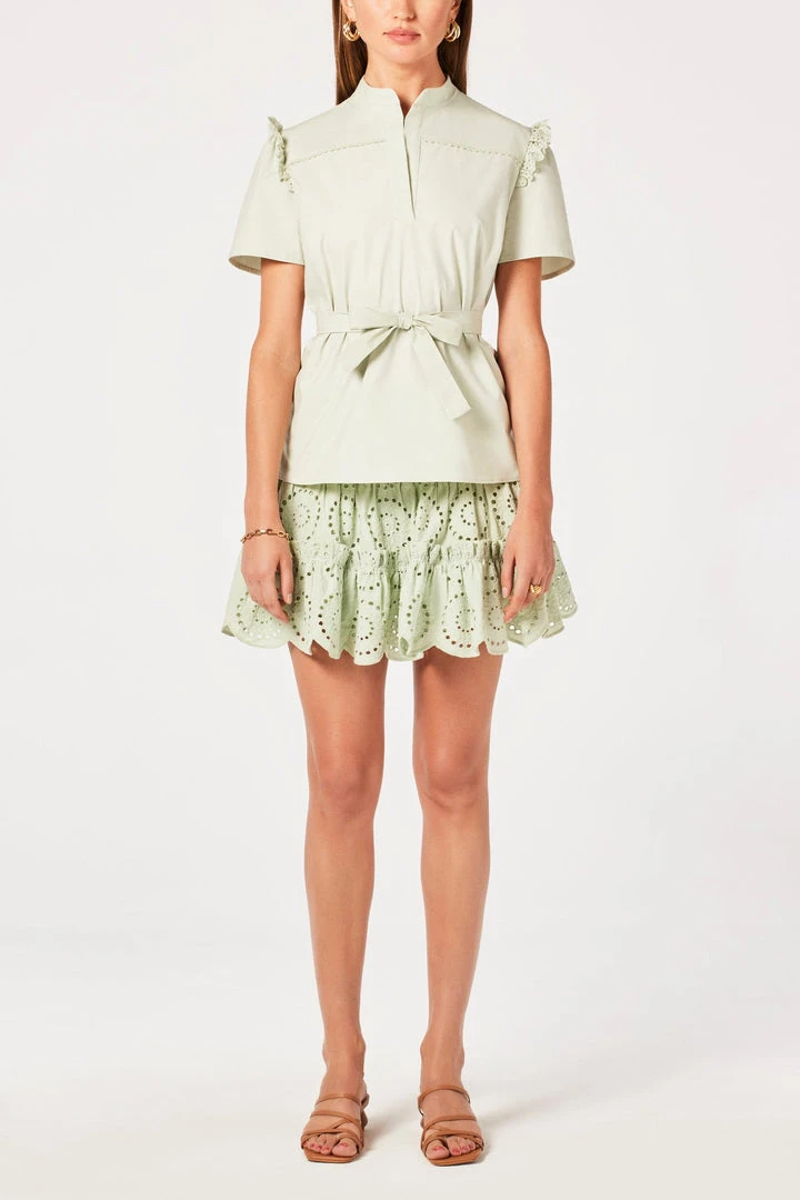Feminine silhouette featuring a cinched smock waistband for premium comfort. Kylie offers a scalloped hem and 100% breathable embroidered cotton from China. Designed, dyed, and sewn in Los Angeles.