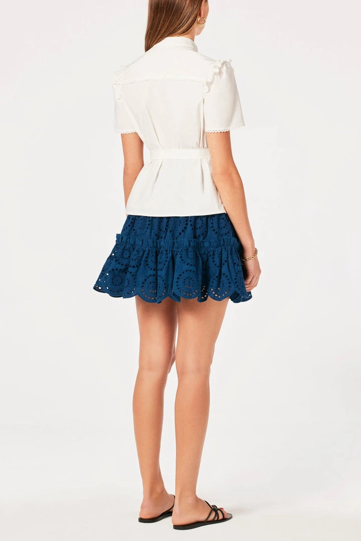 A structured silhouette meets subtle femininity. Celia features an A-line cut with a removable tie at the waist and scalloped trim on the shoulder. 100% cotton poplin fabric made in Japan. Designed, dyed, and sewn in Los Angeles.