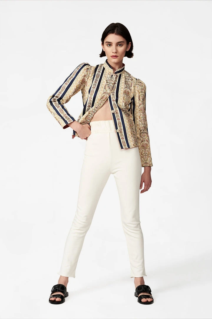 Whether sitting on your sofa or in your favorite cafe, our brand new Clebourne pant will keep you comfortable and chic. It’s made from the finest French Terry and Japanese ribbon. The waistband and bottom hems feature embroidered edges.