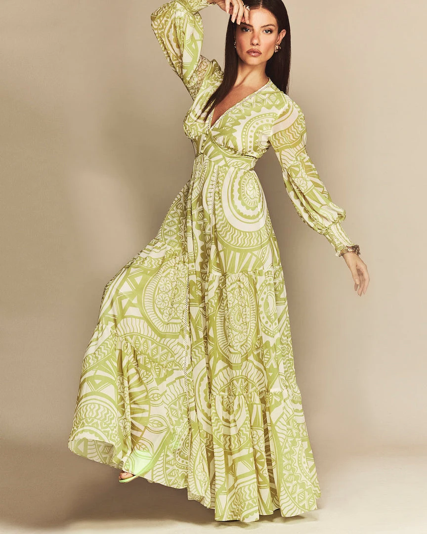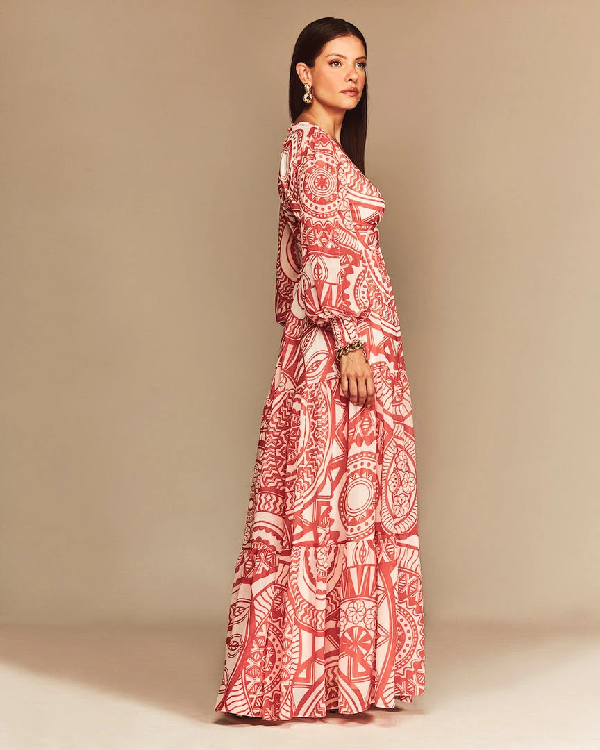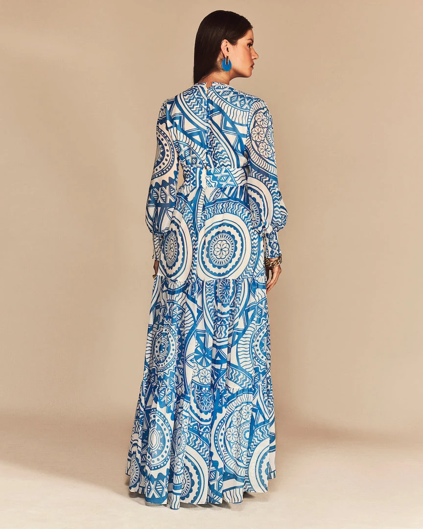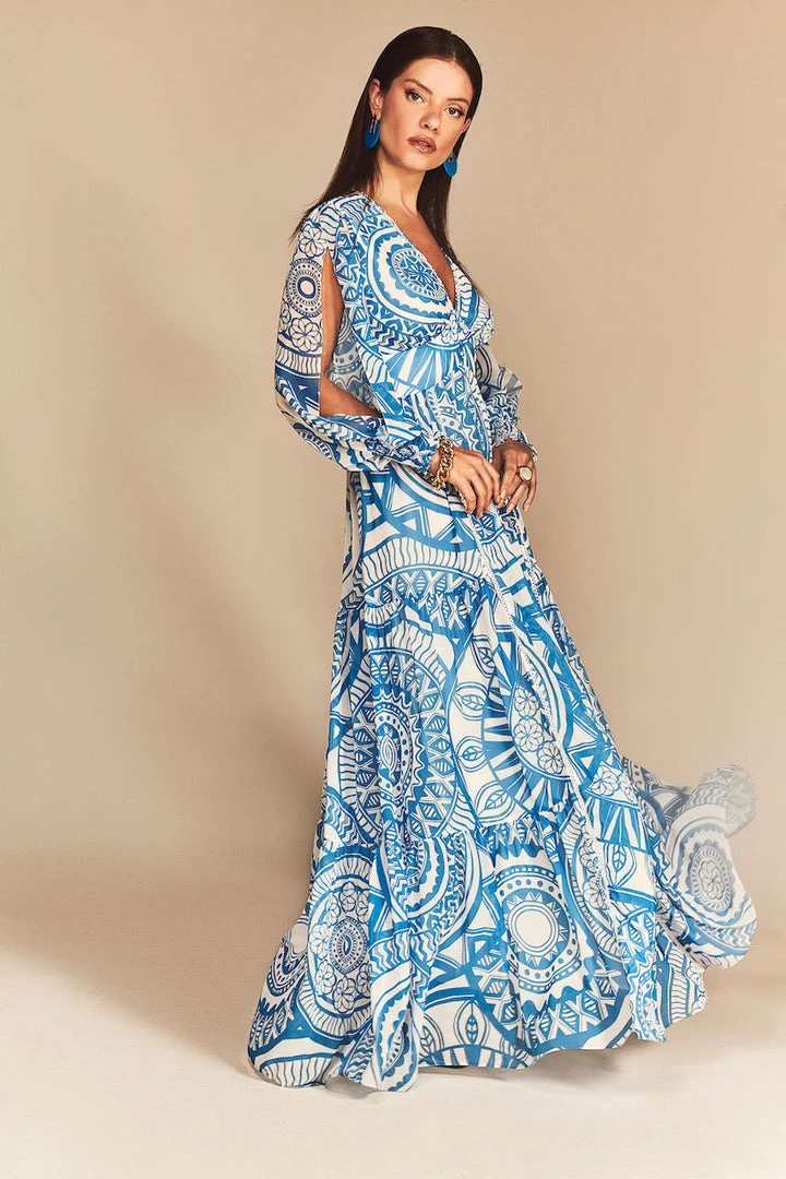 This long sleeve v-neck maxi dress, features our exclusive custom CS mandala print. The Faith creates a dramatic look with it’s gorgeous flowy silhouette. Detailed with sleeve slits, and smocked wrists.
