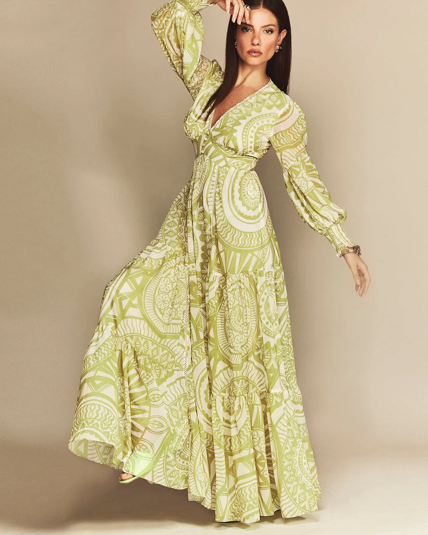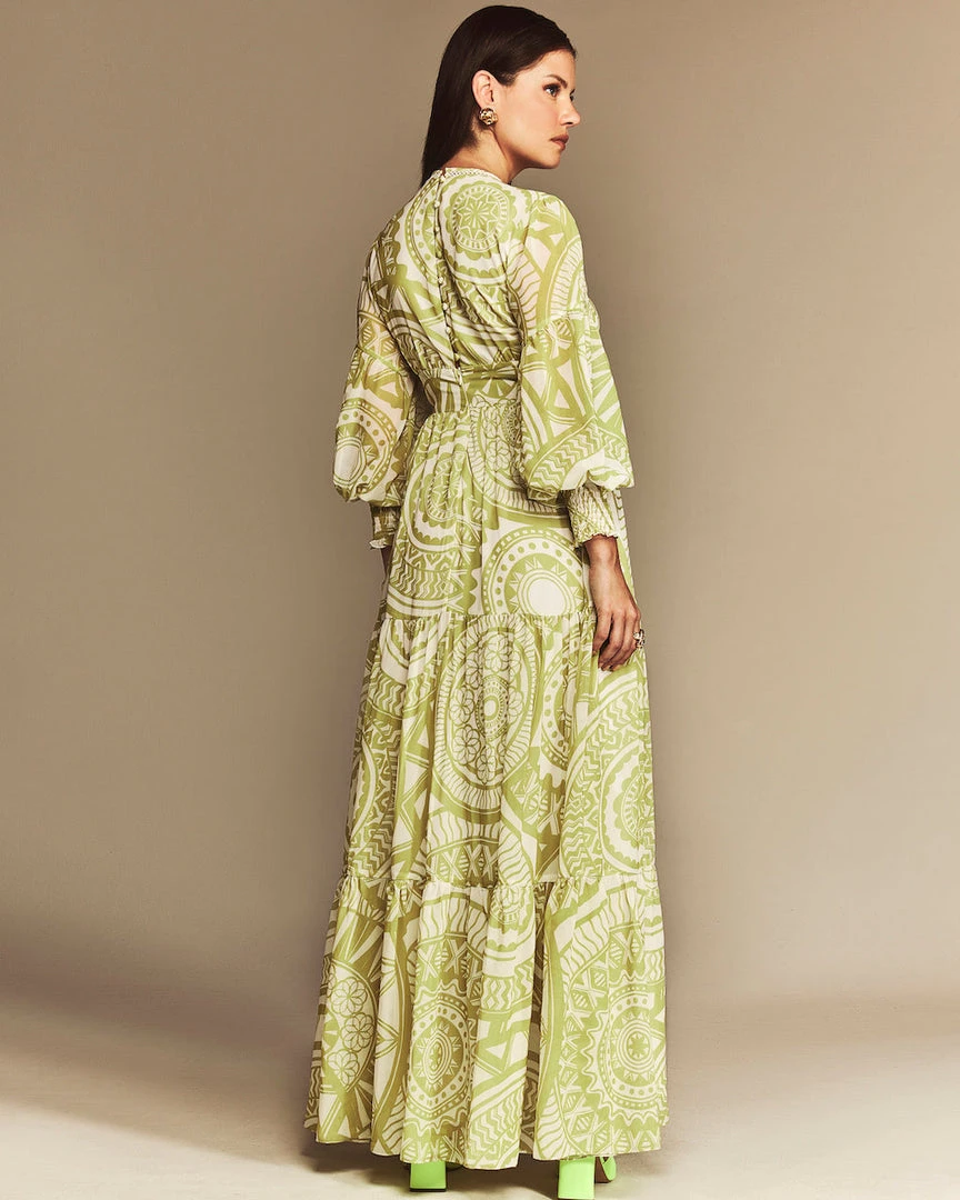 Cristina Sabatini Lime/ Faith Long Sleeve Maxi Dress