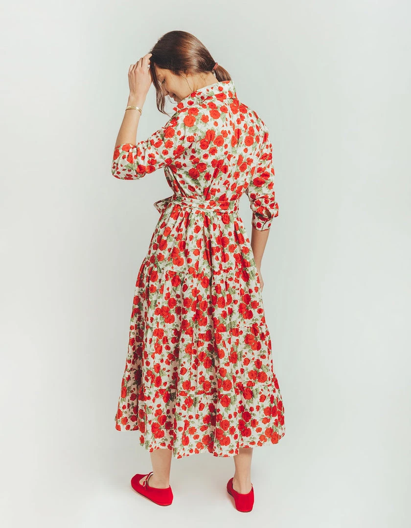 This perennial favorite dress features a universally flattering spread collar, a buttoned placket and a multi-tiered skirt. We love juxtaposition of a classic, heritage print with a bohemian silhouette. This Liberty London Cotton is lighter weight than our other fabrics (but still not sheer), making it perfect for warmer days.