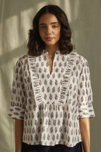 A great everyday blouse with a pretty, gently frilled bib and softly gathered shoulders.