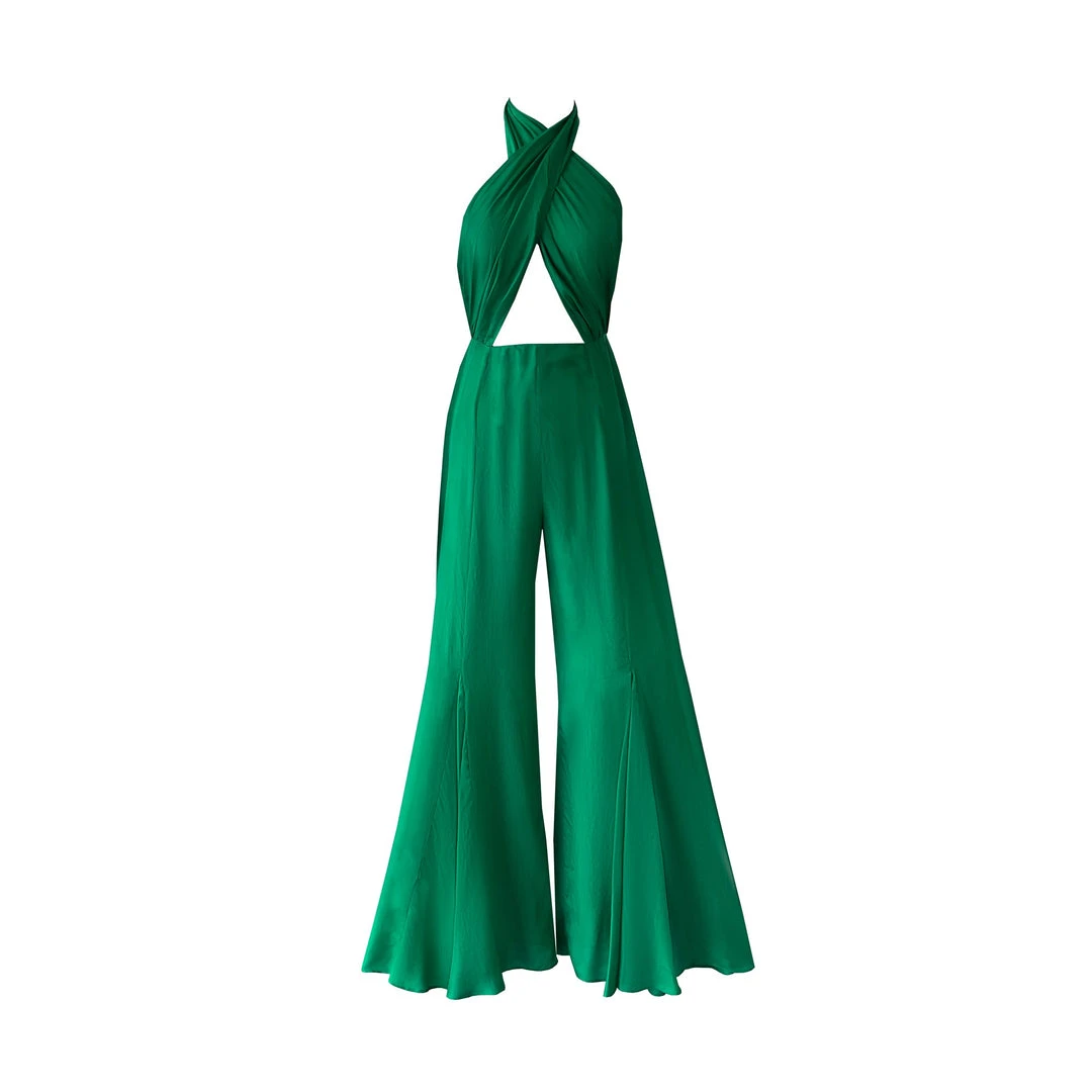 This flowy jumpsuit in green color is crafted from our lightweight satin silk.