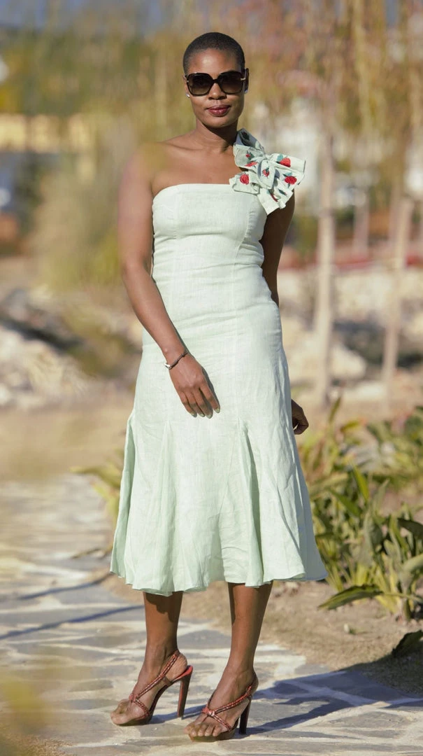 Model’s measurements: Bust 85 cm (33′) / Shoulder 40 cm (16′) / Waist 62 cm (24′) / Hip 90 cm (36”)