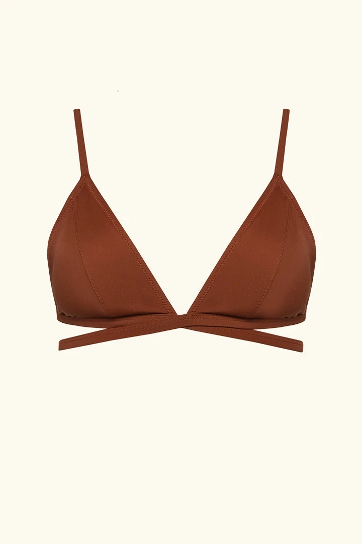 The fixed and wide triangle cups feature removable bra pads and are designed with a center seam that allows the fabric to shape and mold nicely against the bust. Â Complete with adjustable shoulder straps (via rings and sliders) and long ties that are meant to be wrapped once around the body and secured at the back.Â