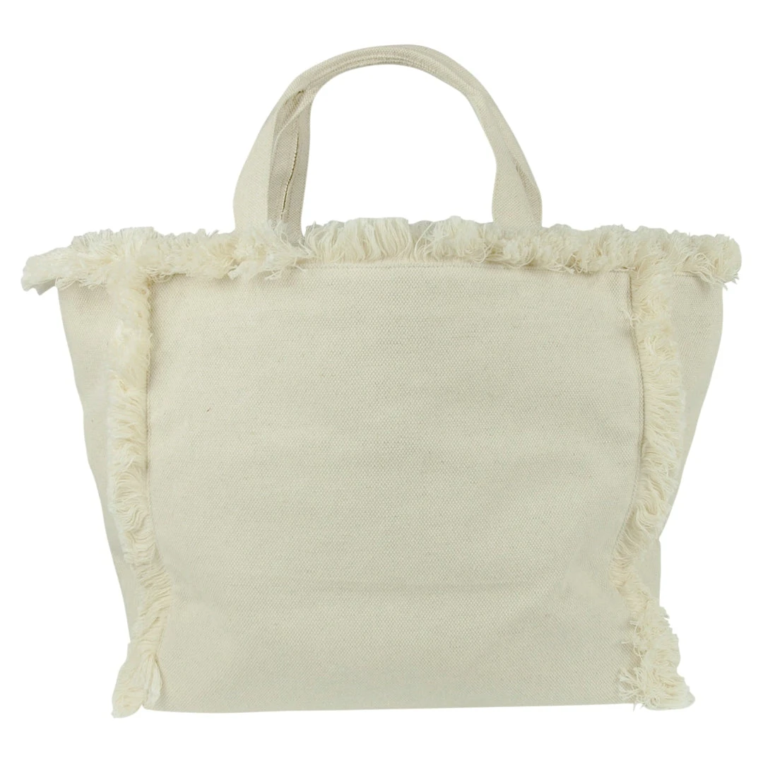 The launch tote is a packable canvas tote that can fit all of your beach essentials, or as a travel bag on a flight. This canvas beach tote comes in solid or stripe, both with frayed edge detail.