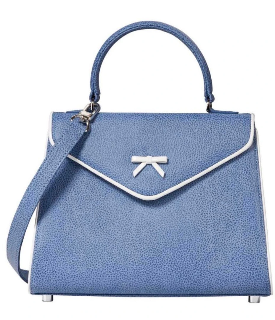PEBBLED LEATHER W/ WHITE PATENT PIPING/NICKEL HARDWARE/ LIPSTICK RED SUEDE INTERIOR