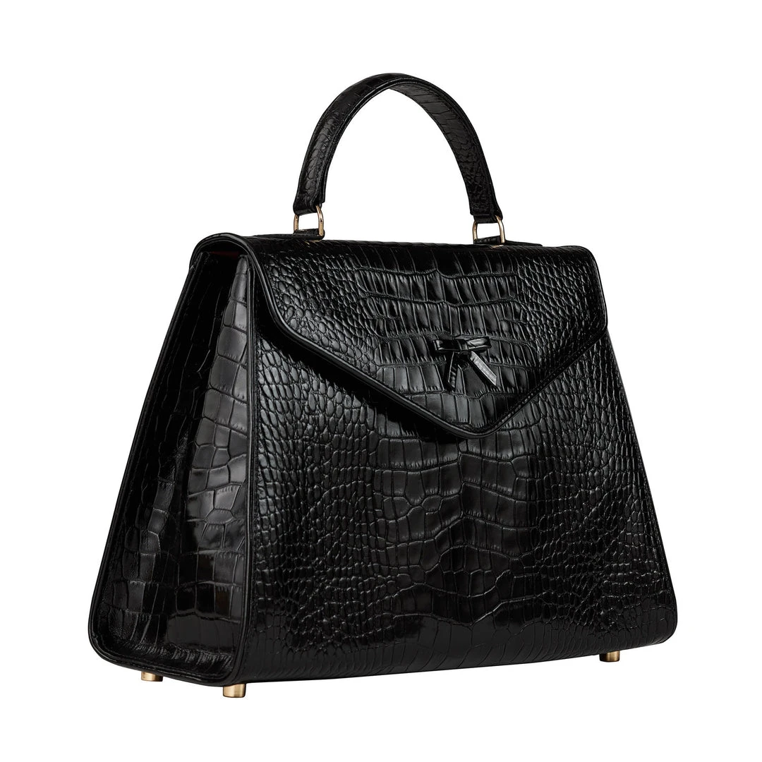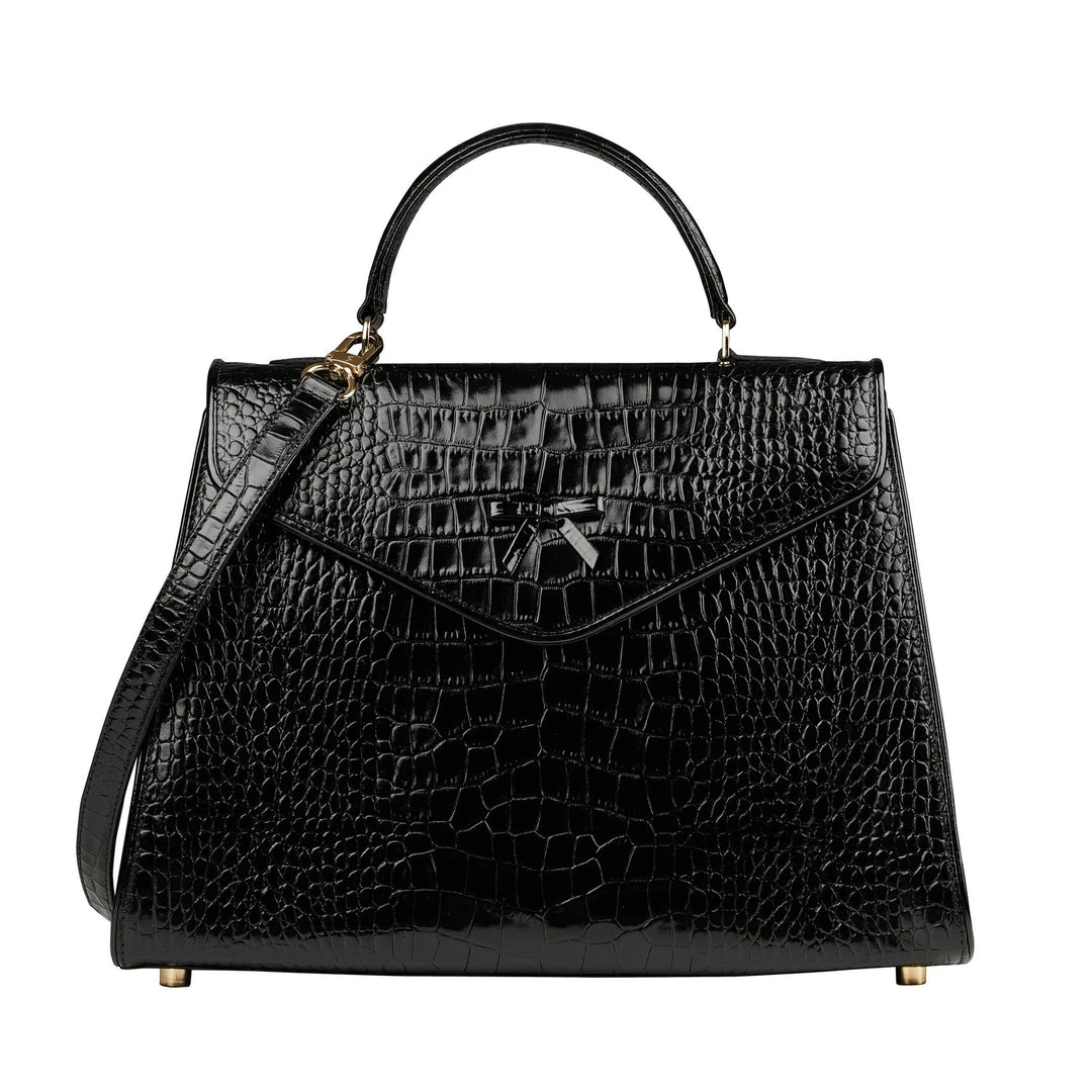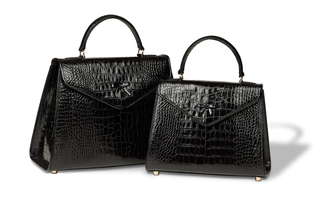 - Black Italian crocodile embossed leather