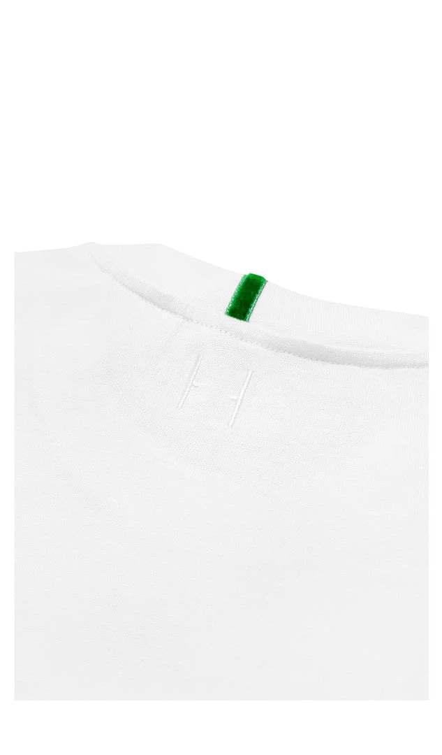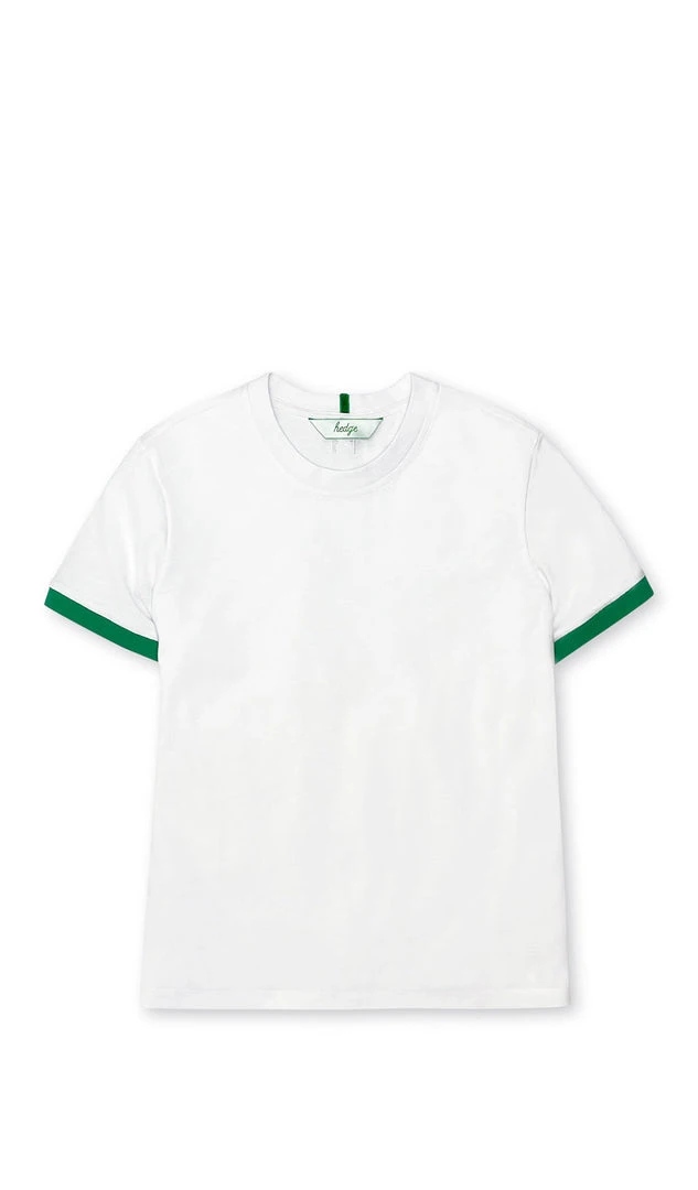 This classic tee with ribbed arm bands was inspired by our gym issued tees from high school. We love this vintage style with ribbed green trim arm bands in 100% cotton, soft as ever. The fit is not too tight or boxy; just sexy, sporty and cool.