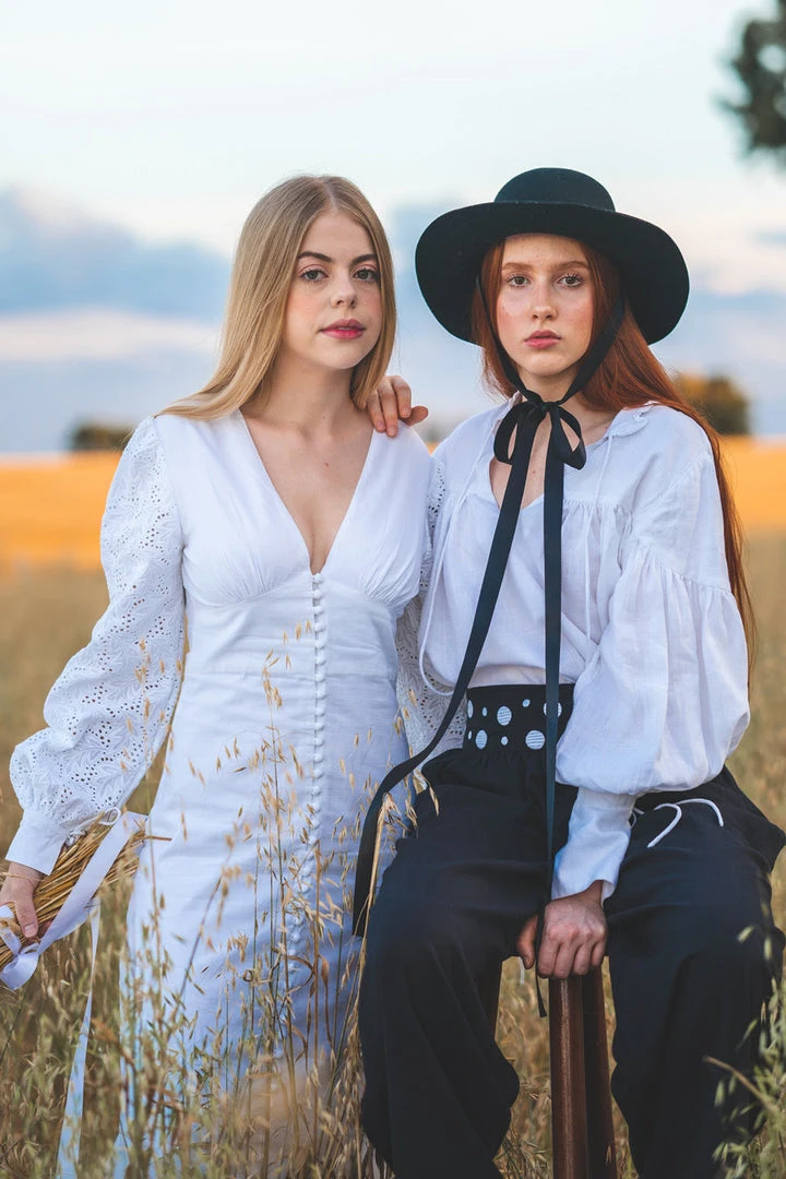- Adjustable tie up detail on the cuffs for either a billowed or an open elongated sleeve.