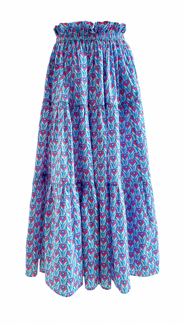 The Porquerolles Skirt is colorful, comfy and chic at the same time. With it’s wavy shape, it will give you this nonchalant french touch. With two side pockets and ruffles around the waistband. Complete the look with the Nola T-Shirt and some Espadrilles, et voila the perfect summer styling is done! ready to ship.