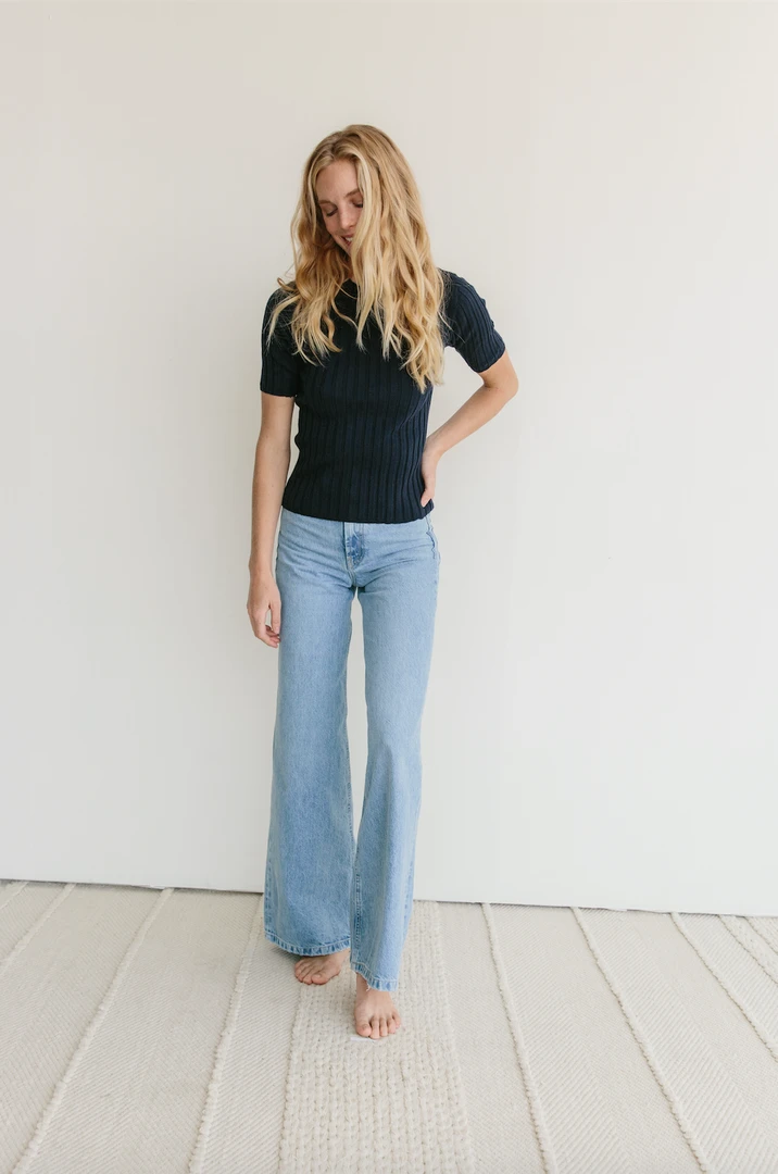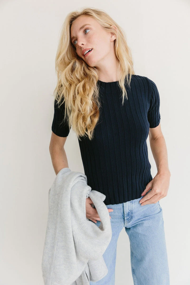 The completely machine washable, superfine wool tee that could change your life. Super light, perfect year-round with the Kimberly pant, denim or pretty much anything. Crew neck, rib stitch and oh, so soft. 100% made in Italy.