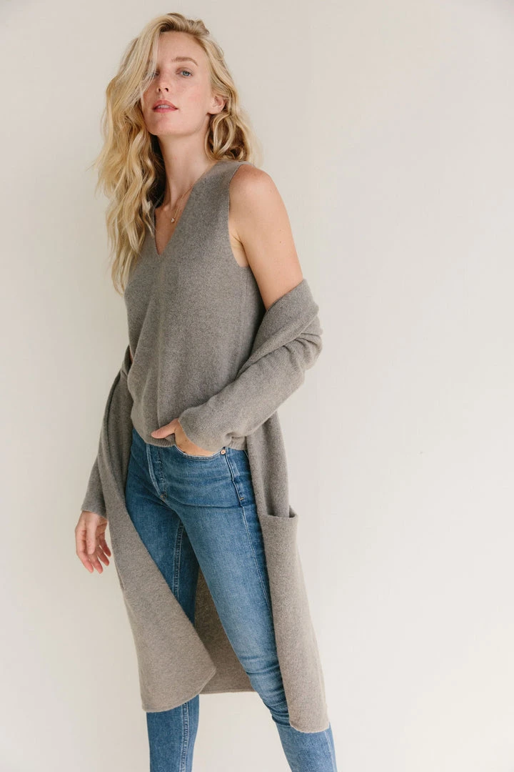 Let’s turn up the cashmere in here. What do you get when you pair our iconic Hannah Duster with it’s matching Tank? A soft, lofty, luxe set with just a bit of stretch (but engineered never to stretch out). It’s the sort of pairing that elicits a lot of “where’d you get that?”