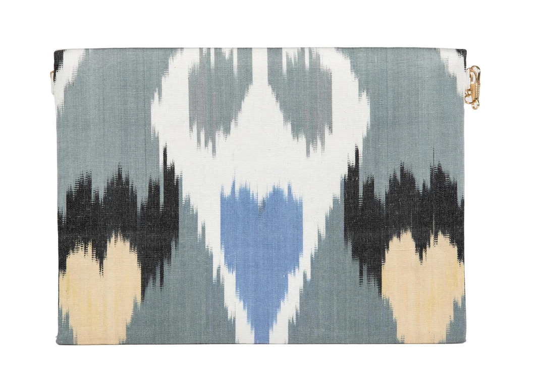 Made by silk ikat artisans who are masters of their craft. The craftsmanship of ikat has been handed down from generation to generation along the Silk Road. We work with a village in Uzbekistan where each family is responsible for -and are masters of- a specific part of the production process. It can take up to a month to weave a single yard of this fabric!