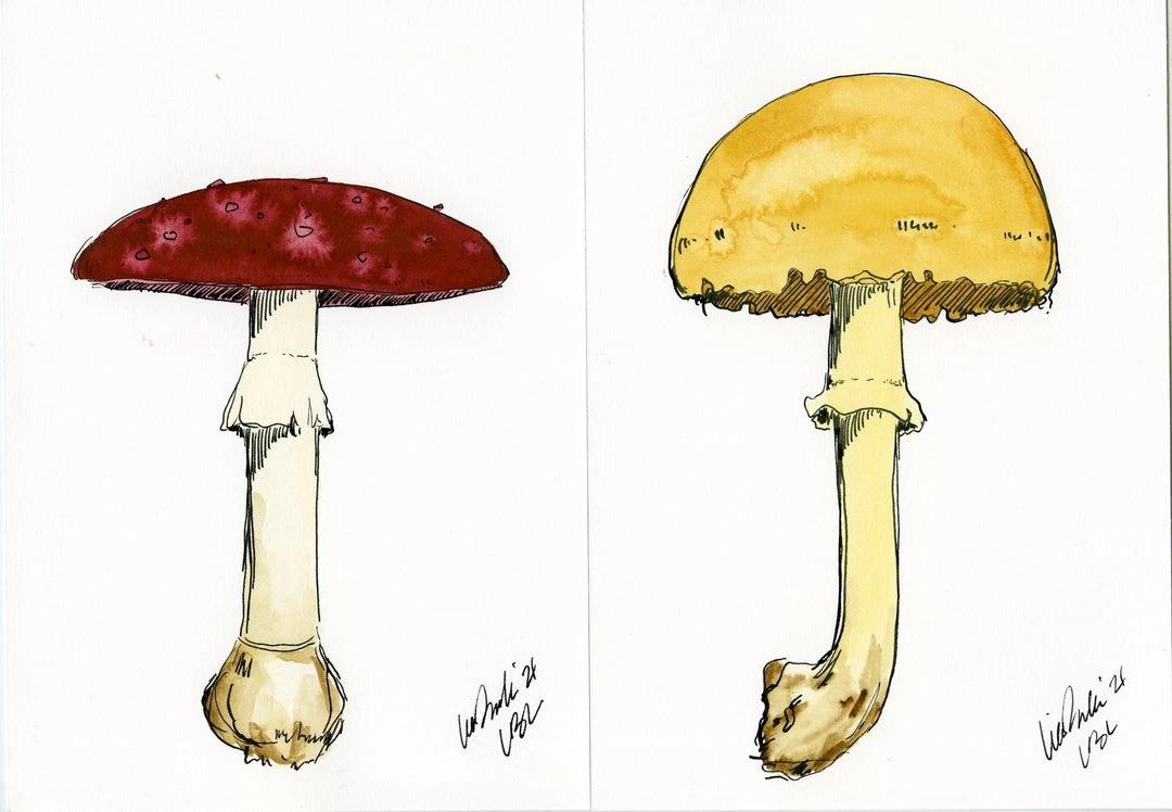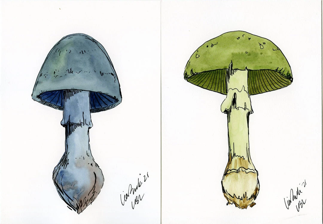 Set of 4 Mushroom prints on archival paper. 8″ square