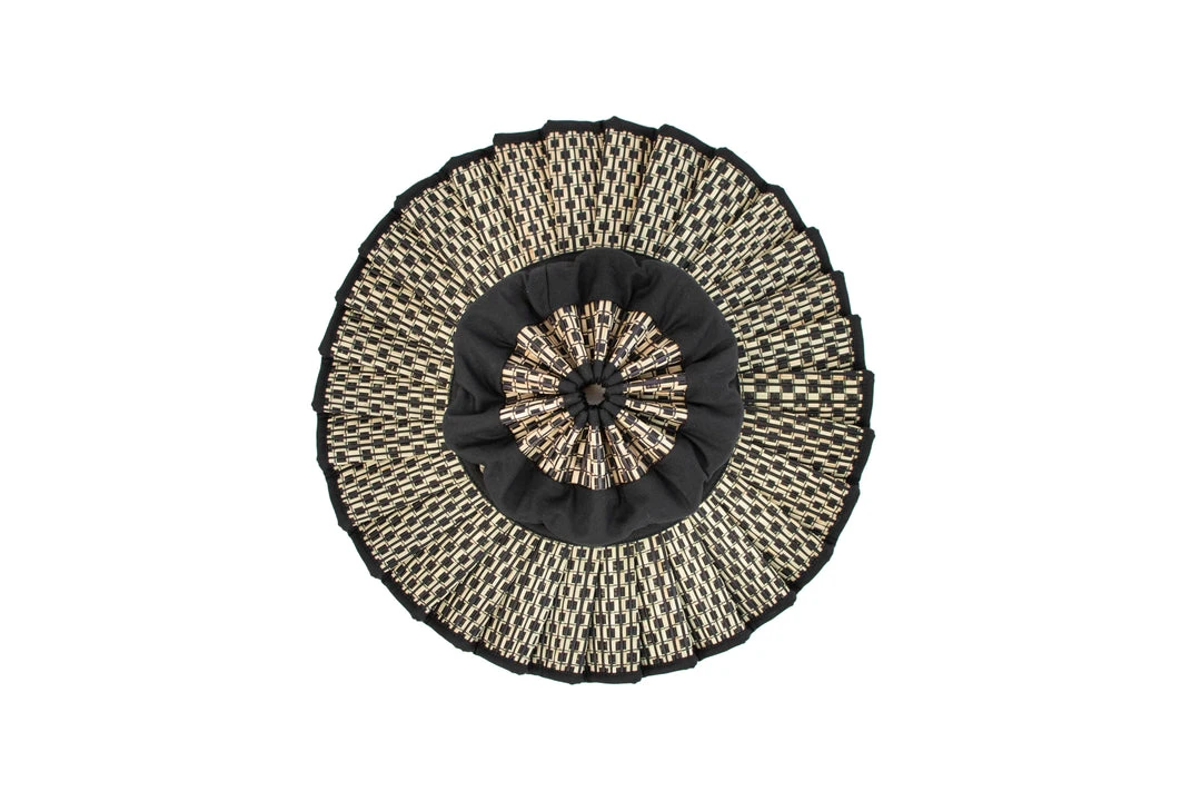 NapoliĀ features bands of blackĀ coloured thread work woven in varying stripes through theĀ black and natural fibre base, withĀ blackĀ coloured fabric trimming.