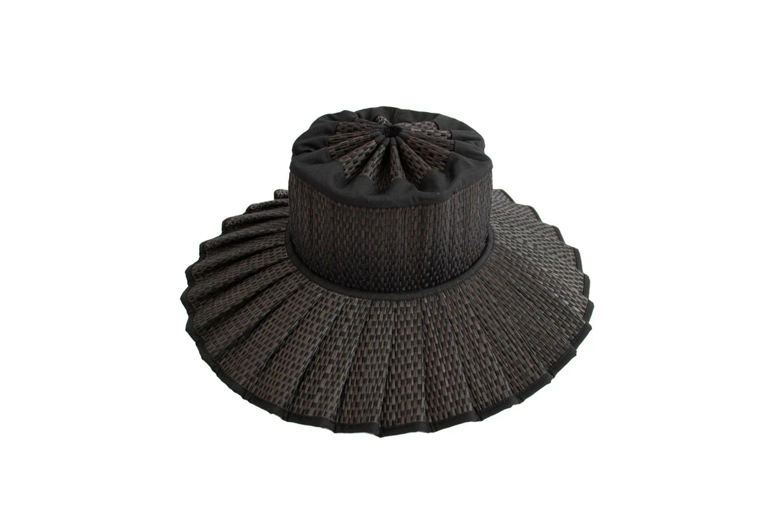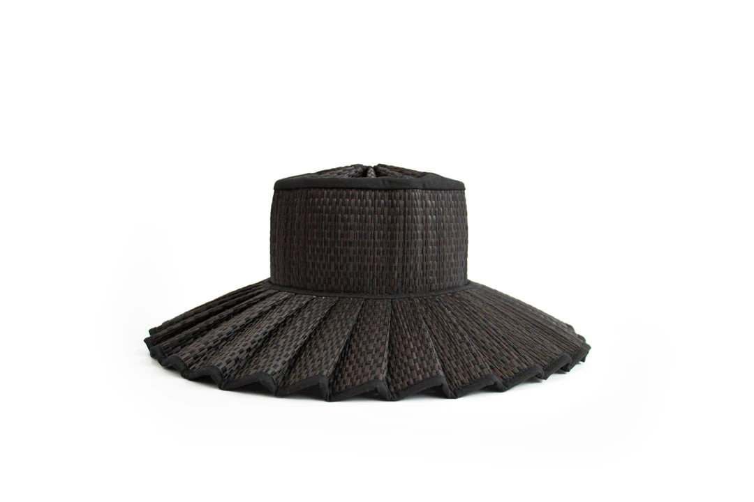 Positano features thick ink-black threads woven through its licorice-black coloured hand-dyed fibre base, with ink-black fabric trimming.