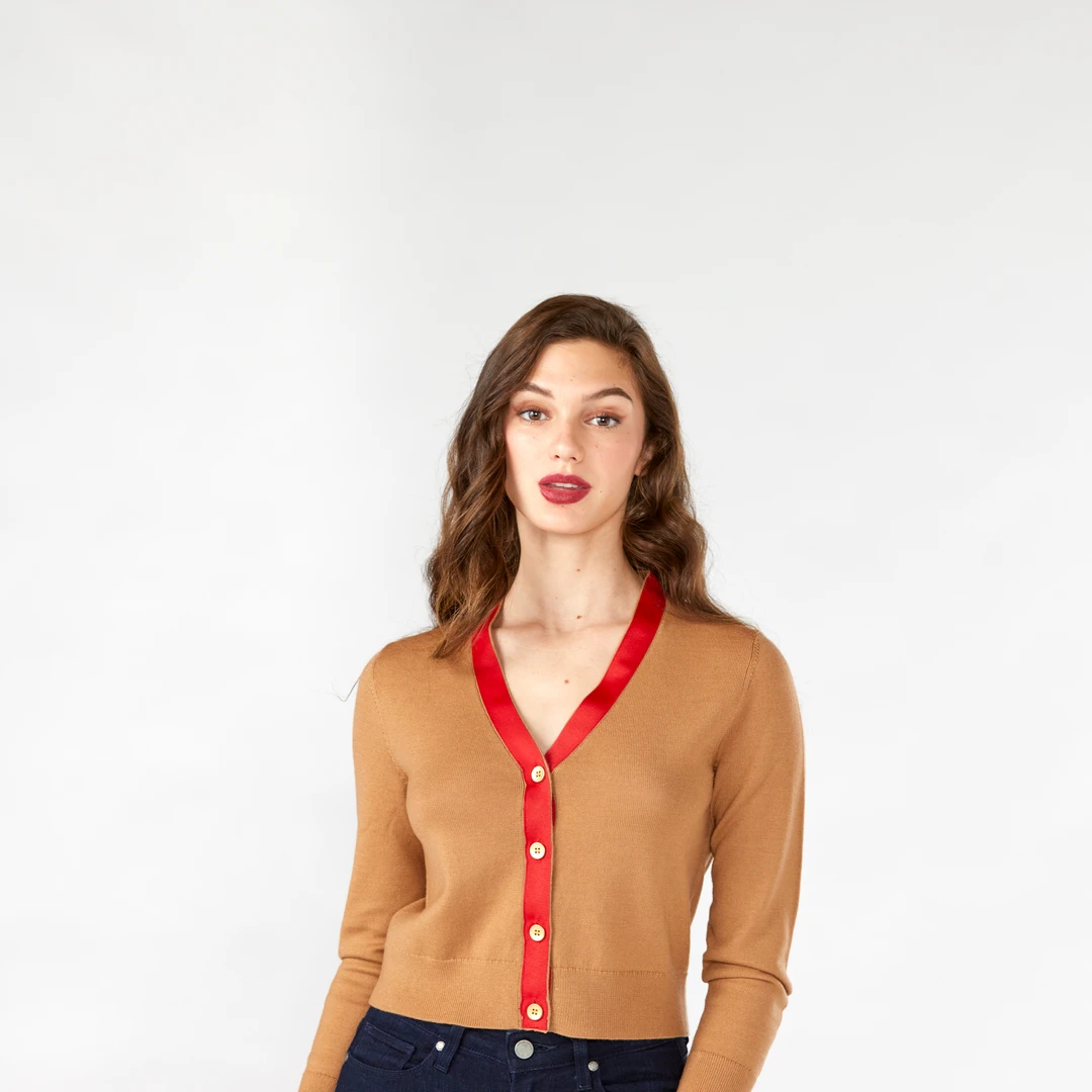 Channel your inner Parisian with our refined cropped cardigan made of 100% fine gauge merino wool, featuring a placket lined with contrast grosgrain ribbon and gold buttons. We love merino wool because it is a lightweight knit worn year-round and it feels like butter. Our merino doesn’t itch or pill and keeps its shape beautifully. Throw on the Chloe by itself with a killer pair of jeans or use it as the perfect outfit polish. Beauty is in the details and this cardigan has you covered.