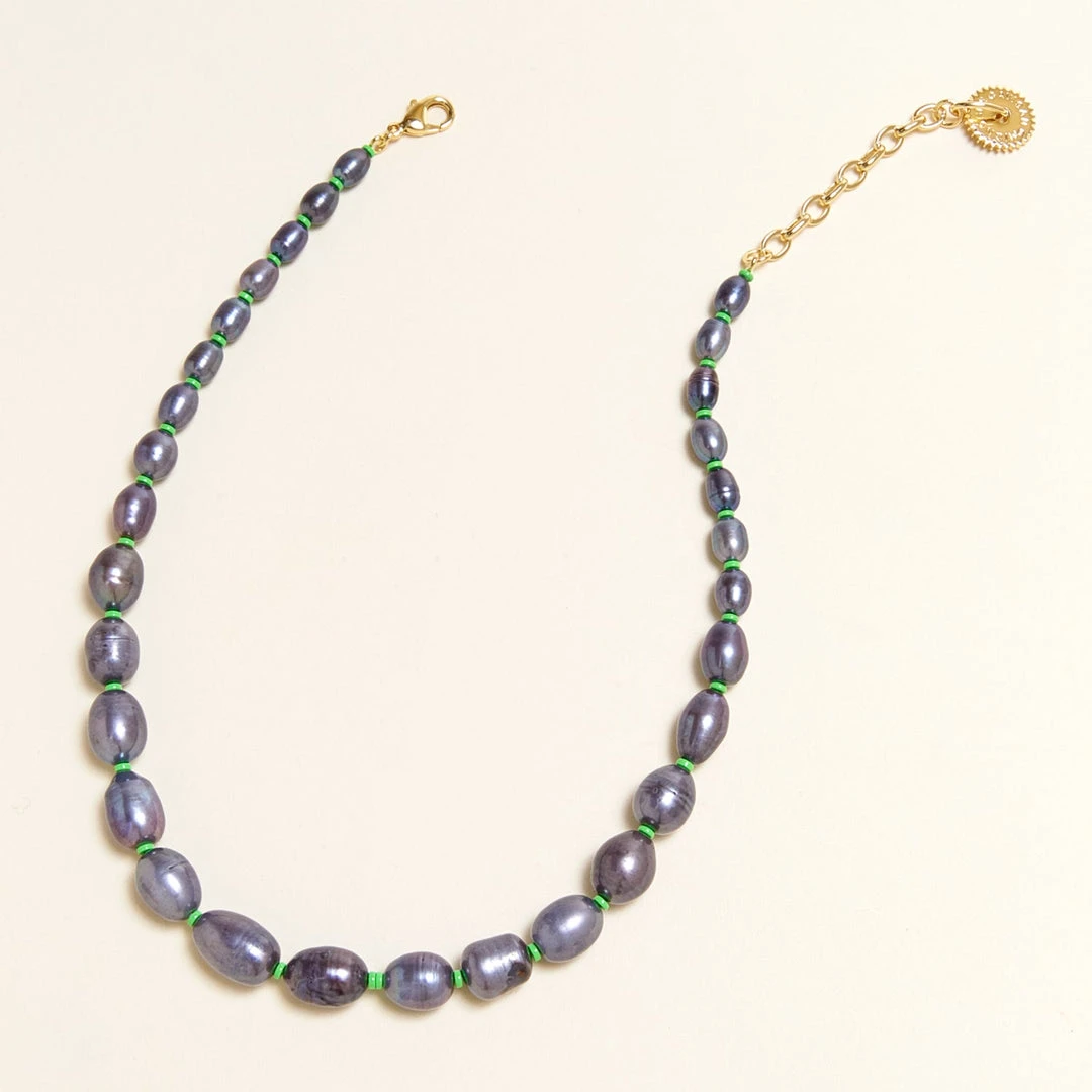 Mignonne Gavigan Maj Pearl Necklace Green Grey