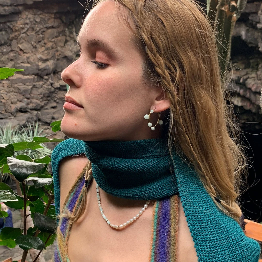 A vision of modern femininity, these sculptural hoops have asymmetrical organic stones with a bespoke quality to them. A gorgeous update to our beloved Mini Isla hoops, these are just as easy to wear daily, and perfectly lightweight in the perfect sea glass color.