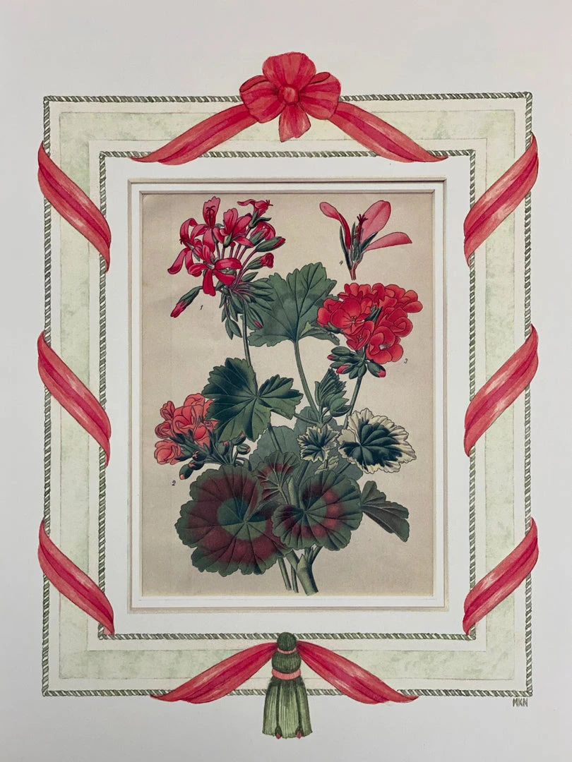 Missy Norton Primrose Trio Antique Print With Hand-painted Roping And Floral Fabric Border