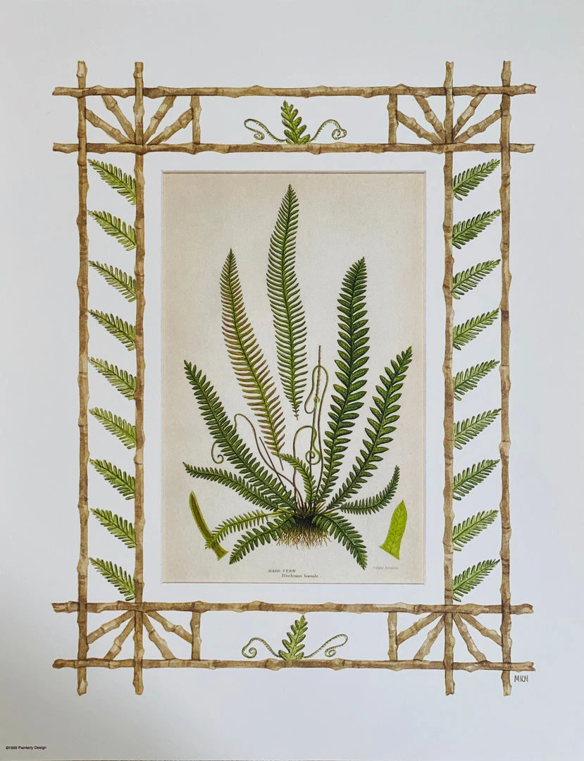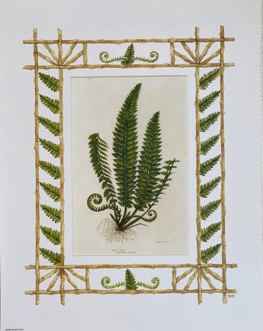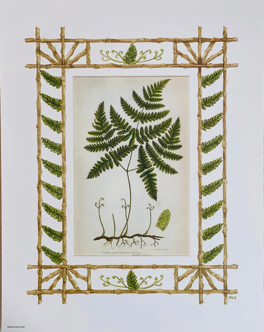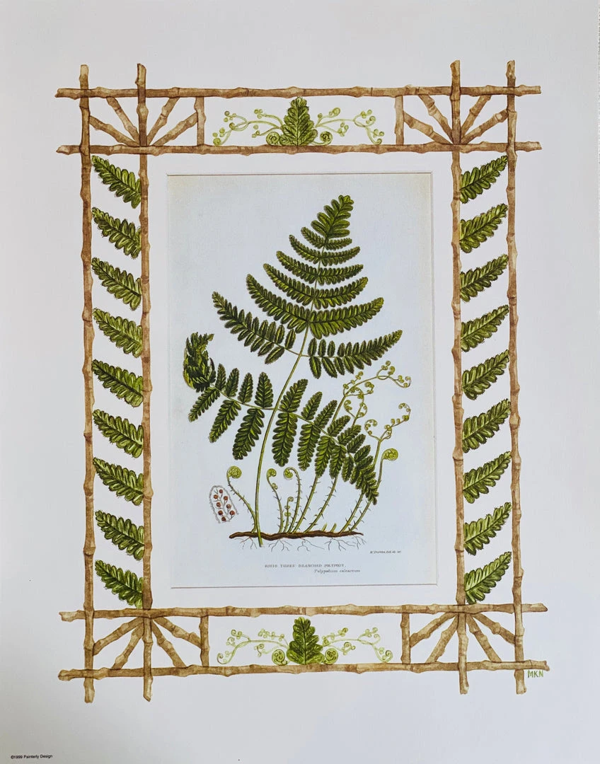 Missy Norton Primrose Trio Antique Print With Hand-painted Roping And Floral Fabric Border