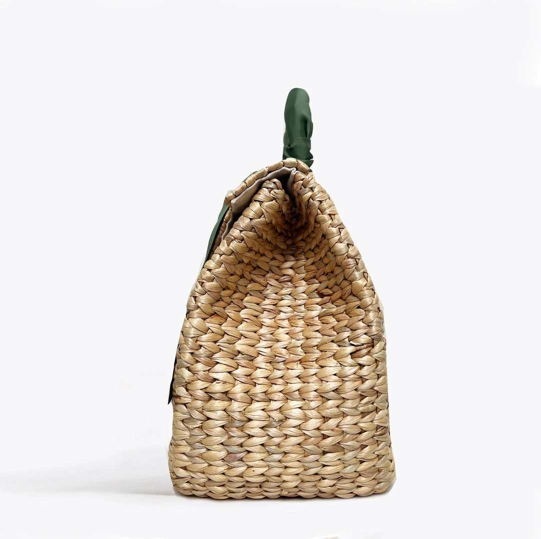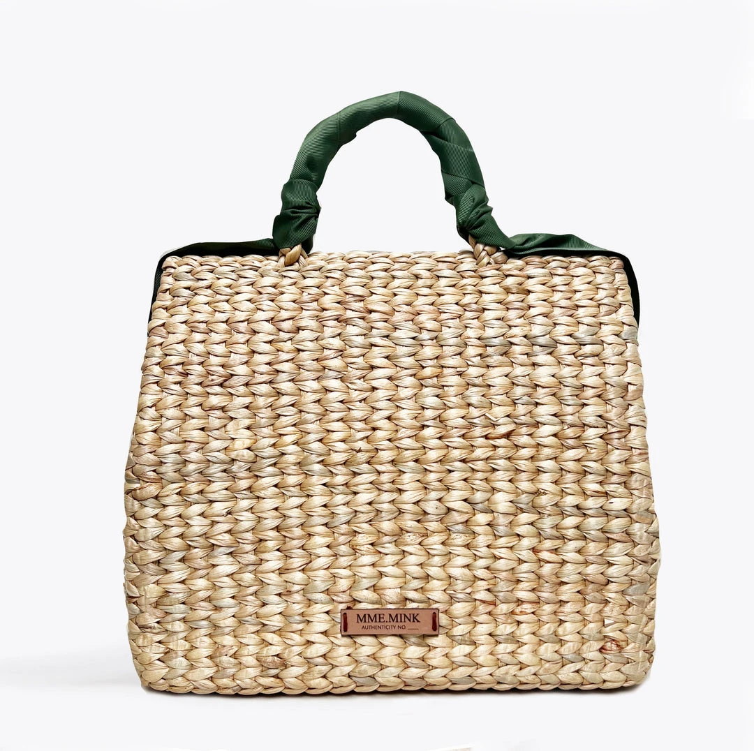 - MATERIAL: Organic Grass-Woven Tote with canvas lined interior.