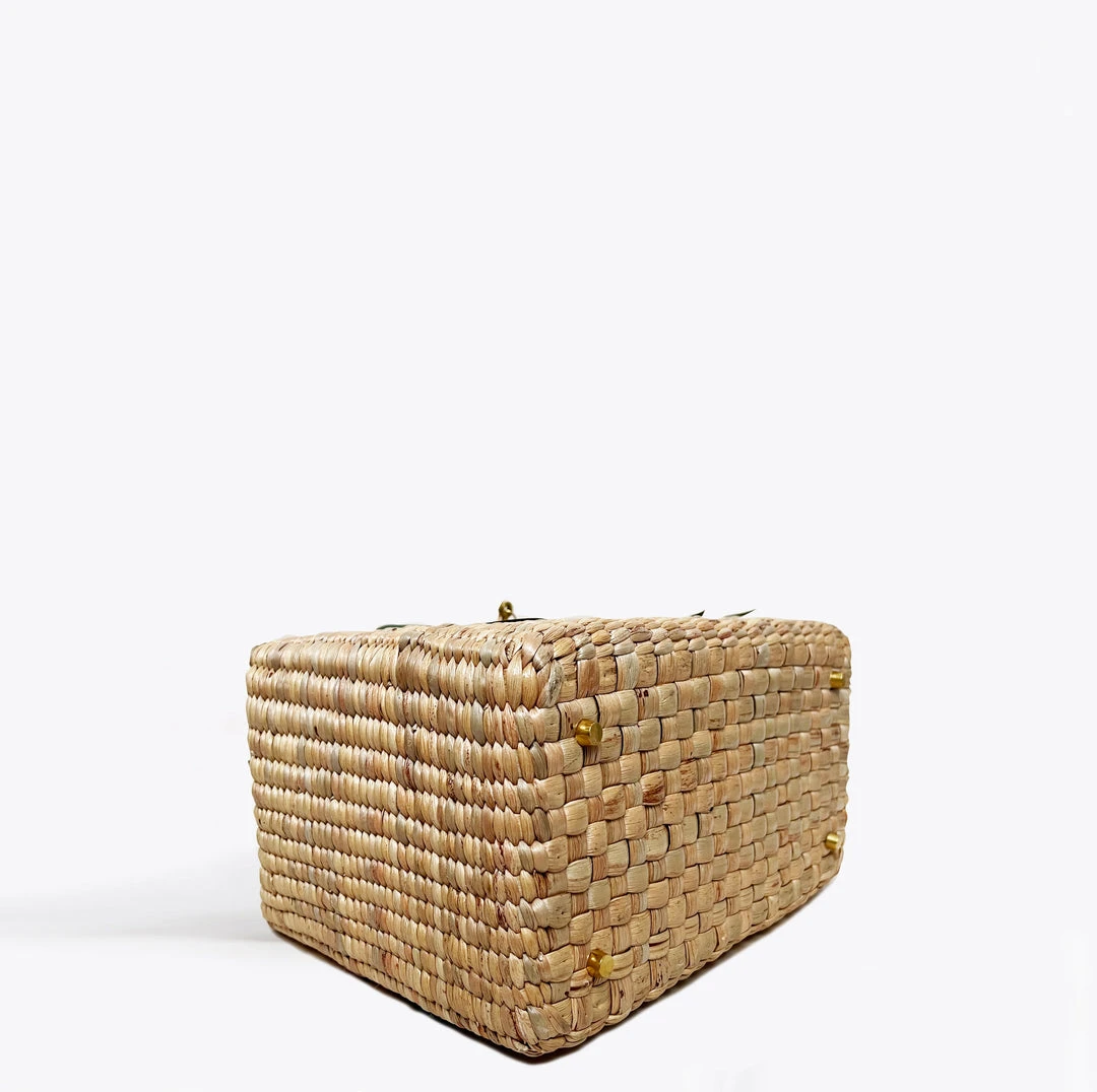Our Newest and truly to become a favorite MME. Dr. Bag is the PERFECT tote. Made from organic grass fibers woven and strung as per MME.MINK design, this beautiful handbag is made in limited quantities for the Season.  Our signature hardware and ribbon details make the tote distinctive and special. Each bag is hand-numbered with our authenticity label and treated with our white-glove handling to make each piece a very special experience.Â