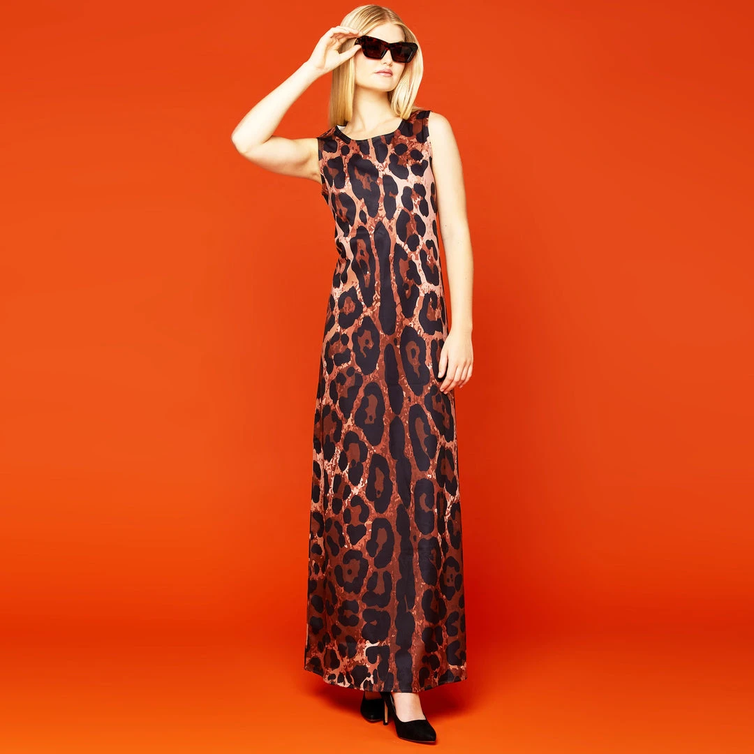 Editors Choice:Â THE Dress of the Season is HERE! Â Our LEOPARDÂ Dress is truly gorgeous and much anticipated. This full length A-Line dress is casual and formal at the same time. Perfect for social gatherings or even stylish ‘around-the-house’ events. Â MME.’s signature print, makes this piece unique to any collection. Â