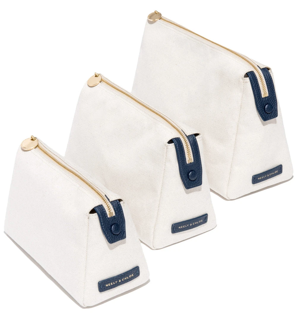 Ready to upgrade your cosmetic pouch? We’ve got your answer. Available in two perfect sizes, this pouch is perfect to organize all that chaos in your handbags. With a coated lining, the pouches will take you from the office to the beach and everywhere in between.