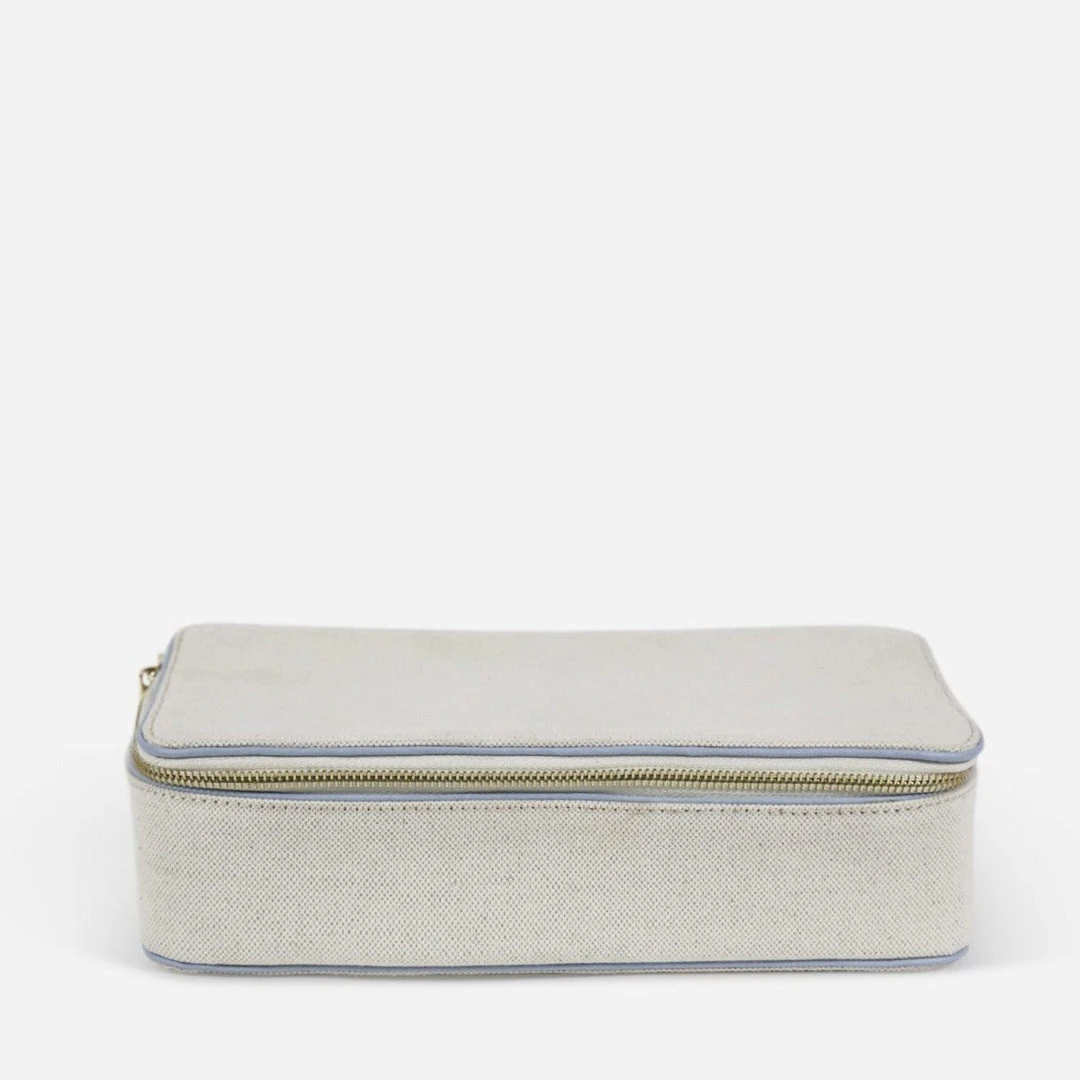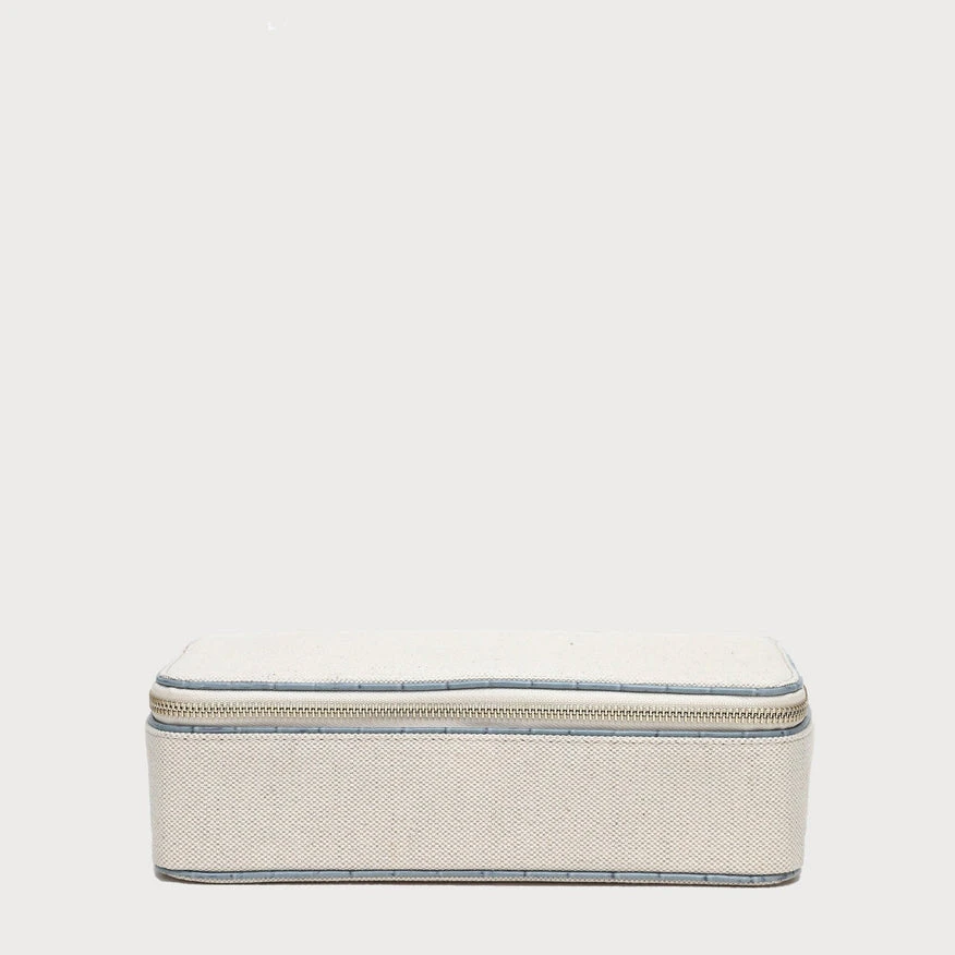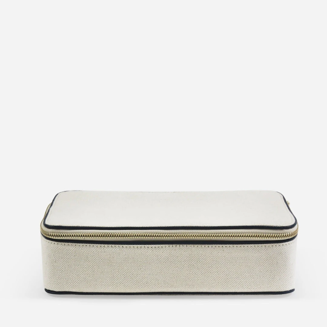 Meet the Jewelry Case- your perfect partner in crime for weekend getaways and vacations alike. Fabricated in our durable (and cleanable!) natural canvas and finished with a leather trim, the Jewelry Case is as pretty as it is functional. Complete with 8 zip pouches inside, there’s room for all your baubles. The padded pouches will keep each piece from scratching and protect your more delicate pieces. Packing just got more fun!