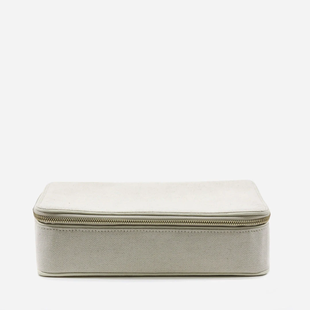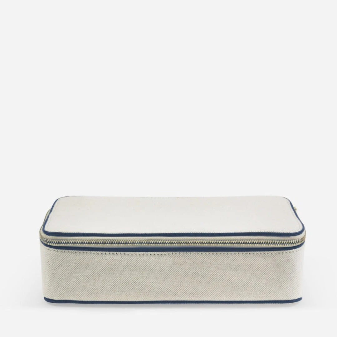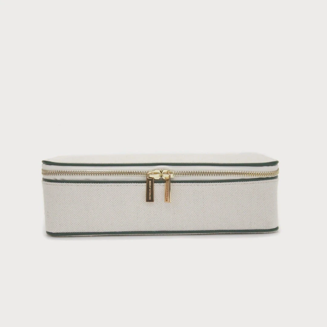 Meet the Jewelry Case- your perfect partner in crime for weekend getaways and vacations alike. Fabricated in our durable (and cleanable!) natural canvas and finished with a leather trim, the Jewelry Case is as pretty as it is functional. Complete with 8 zip pouches inside, there’s room for all your baubles. The padded pouches will keep each piece from scratching and protect your more delicate pieces. Packing just got more fun!