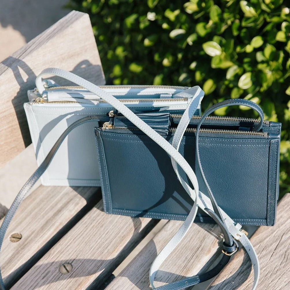 Double trouble, honey. Introducing the Double Zip Shoulder Bag with secret compartment galore. Fabricated in our supple goat leather or pre-treated canvas and leather combination, this is our latest crossbody bag. With two separate zip compartments, one with card slots and the other an interior zip pouch, there’s a spot for all your necessities. Remove the adjustable crossbody strap and the bag doubles as a clutch!