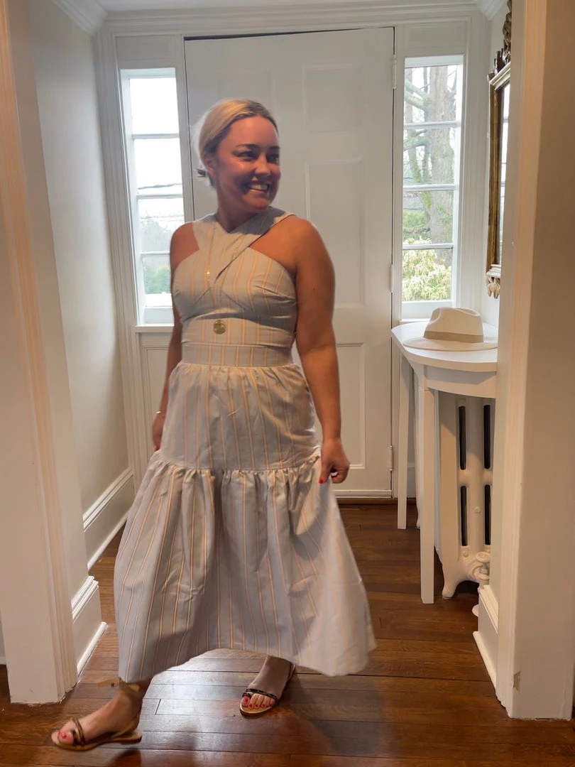 Handmade in the atelier with a beautiful baby blue fabric made out of cotton and HEMP, a natural and extremely sustainable fiber that minimizes the environmental impact of the fashion industry.