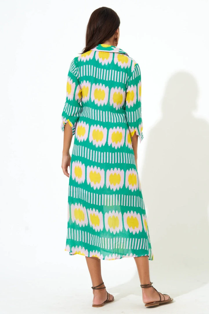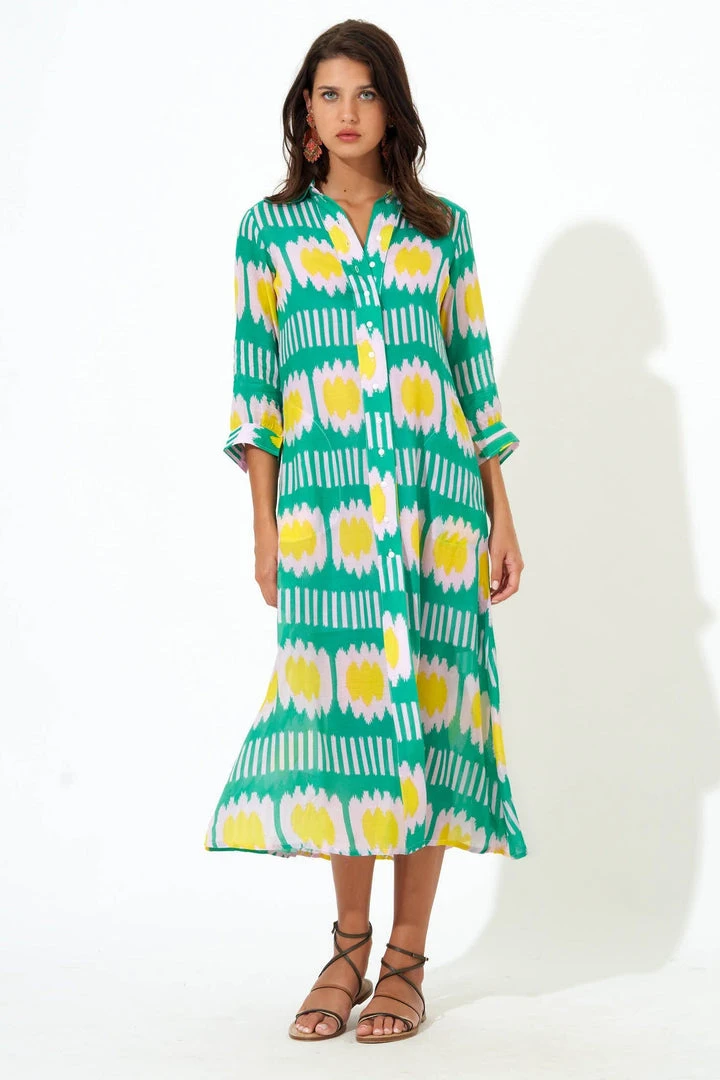 One of our most versatile styles, the Shirt Dress Midi can be worn with its matching slip for full coverage, without its slip as a coverup, and worn unbuttoned as a duster. The slip is secured with metal snap buttons to keep it in place.Â