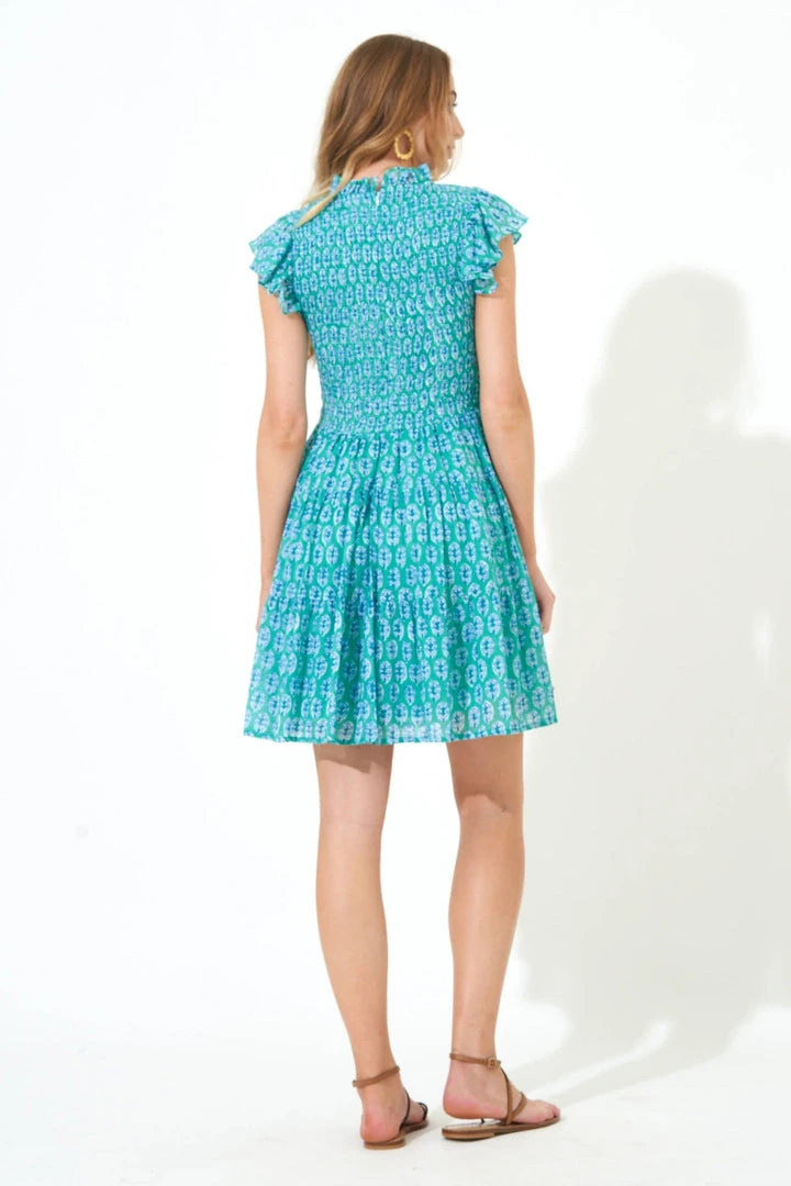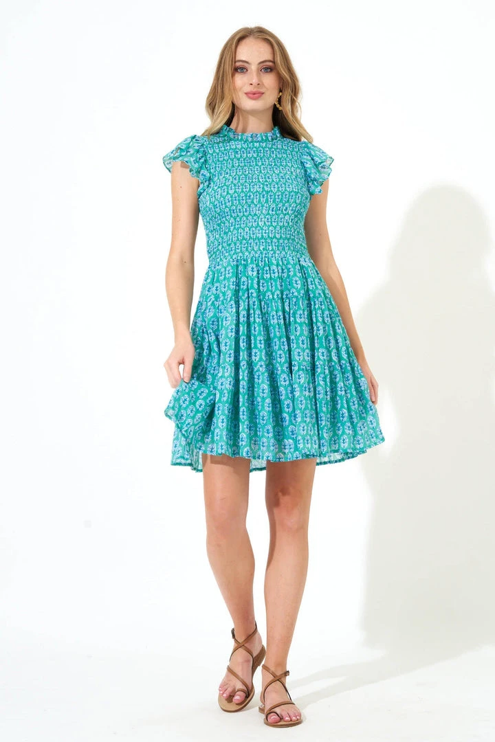 OLIPHANT Smocked Flirty Short Dress- Lisbon Green