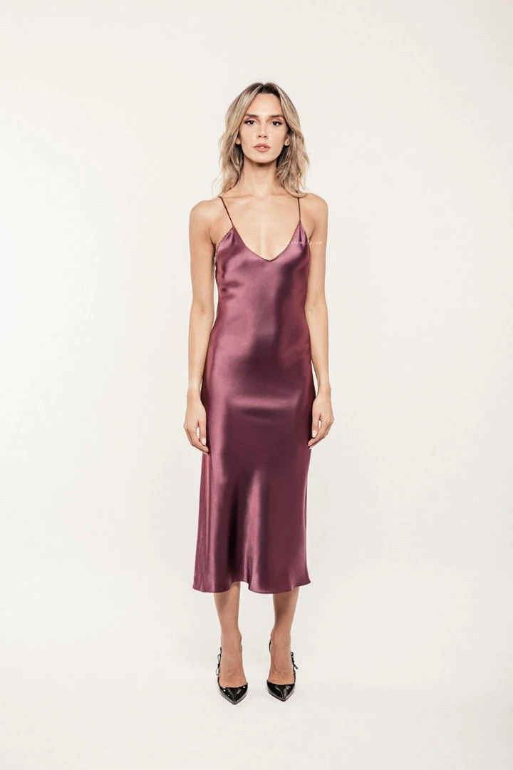 Strappy midi slip-dress, with gold thread stitching for an added flair.