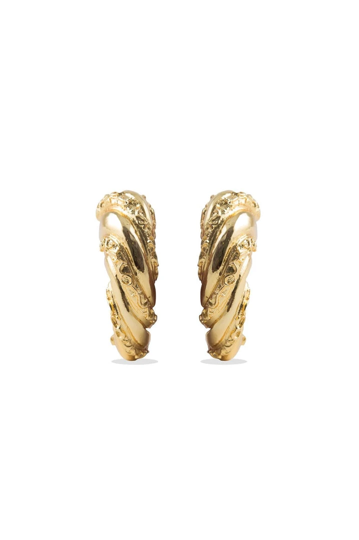Cast from 14K gold-plated bronze, featuring intricated hand-carved details. Sweep your hair back to show them off. Â