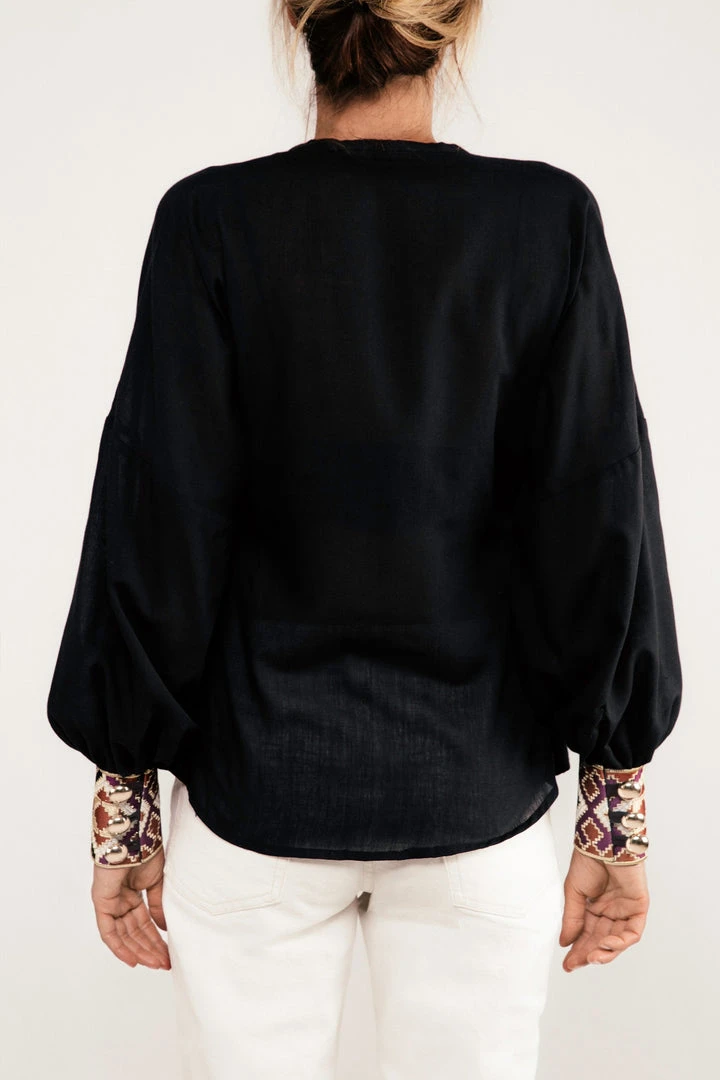 Cut from the softest lightweight Cotton Fabrics, our signature Yar Blouse features elegantly puffed sleeves and our signature embroidered cuffs, as well and buttons through the front so that you can adjust the neckline as desired. These blouses are the perfectly effortless – you’ll be reaching for them all summer long and through the Fall!Â