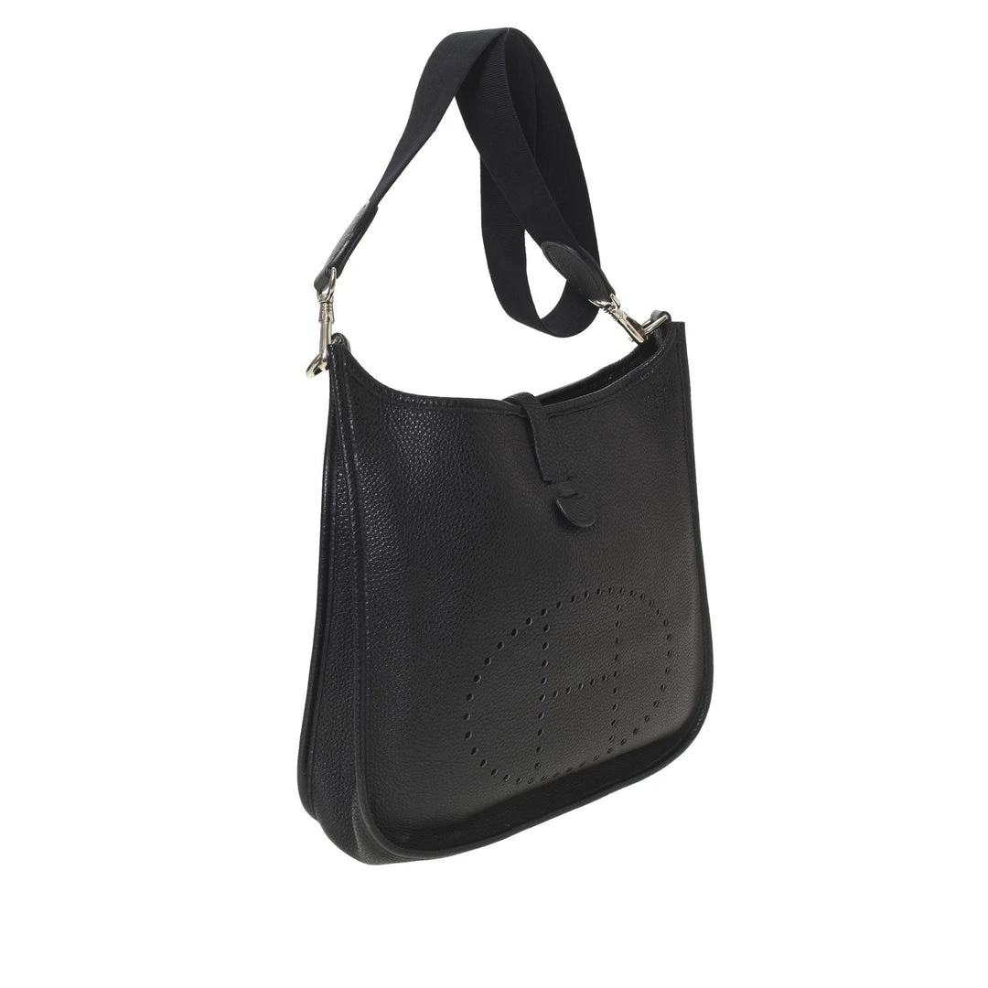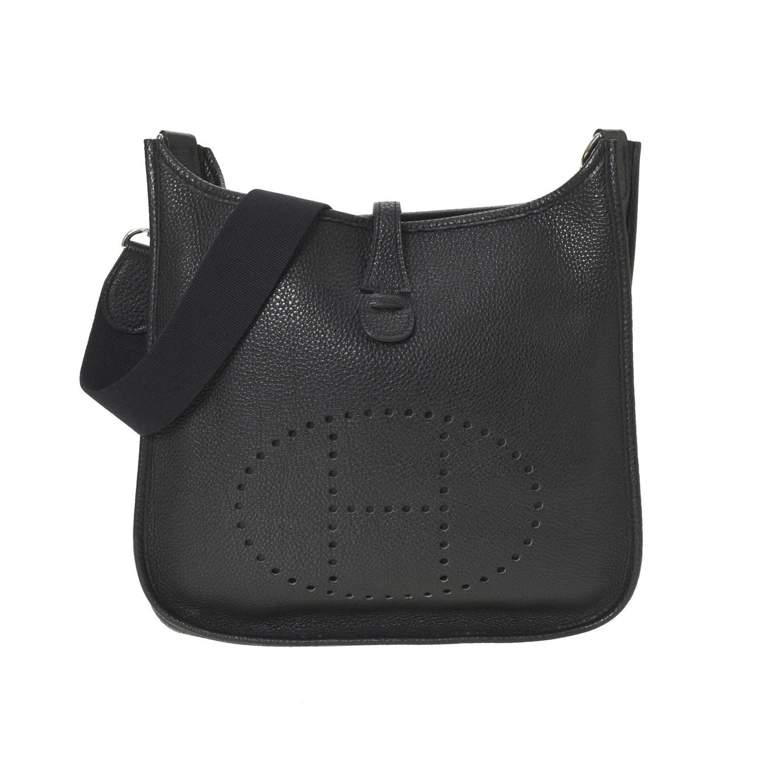 Vintage Hermes Evelyn Black PM 1 guaranteed authenticated from our friends at LXR. This fan fave pairs well with a crossbody for a longer fit or with a shoulder length for a higher on the hip crossbody fit. This black stunner goes with literally every single strap. We love it with the Zoe, Polly, Love in black, Megan and Emily straps, to name a few!
