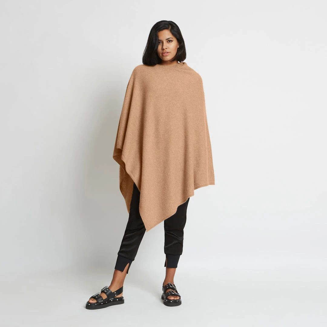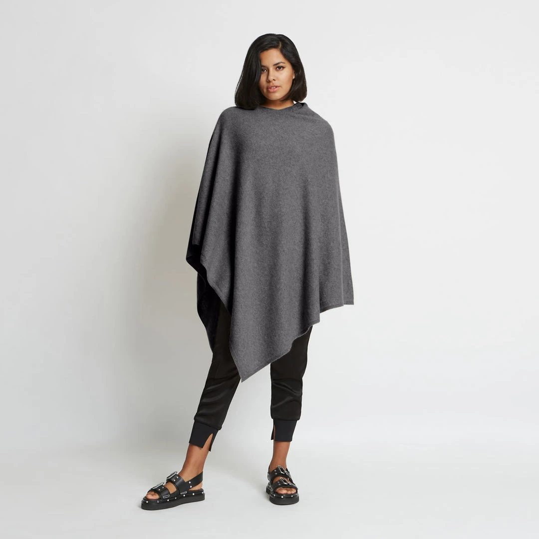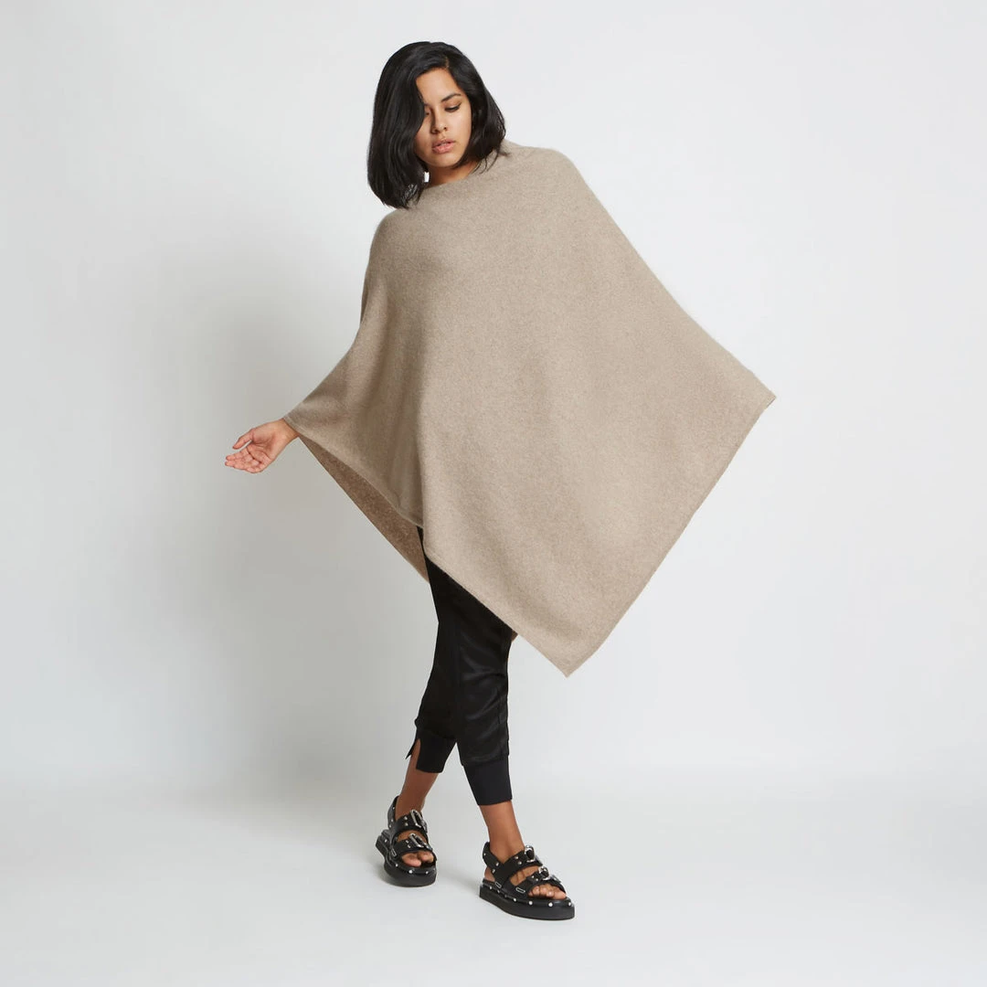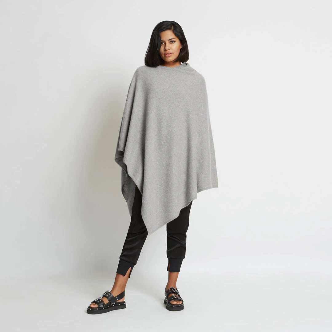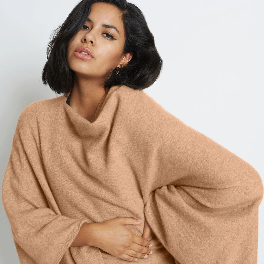 The Jenica cashmere poncho is the staple wardrobe piece that never goes out of style. Incredibly soft and generously sized, our poncho is the perfect gift for yourself or a loved one and comes wrapped in our Santicler biodegradable signature packaging. Made from certified 100% eco cashmere, the yarn is a blend of recycled and premium Mongolian cashmere. One size fits most. The poncho is knitted in one continuous piece and finished with a single seam down the left shoulder. Measuring 32 inches (80 cm) long and 34 inches (82 cm) wide, one size fits most. Our model is 5 feet 8 inches (173cm) tall and generally wears a size XS.