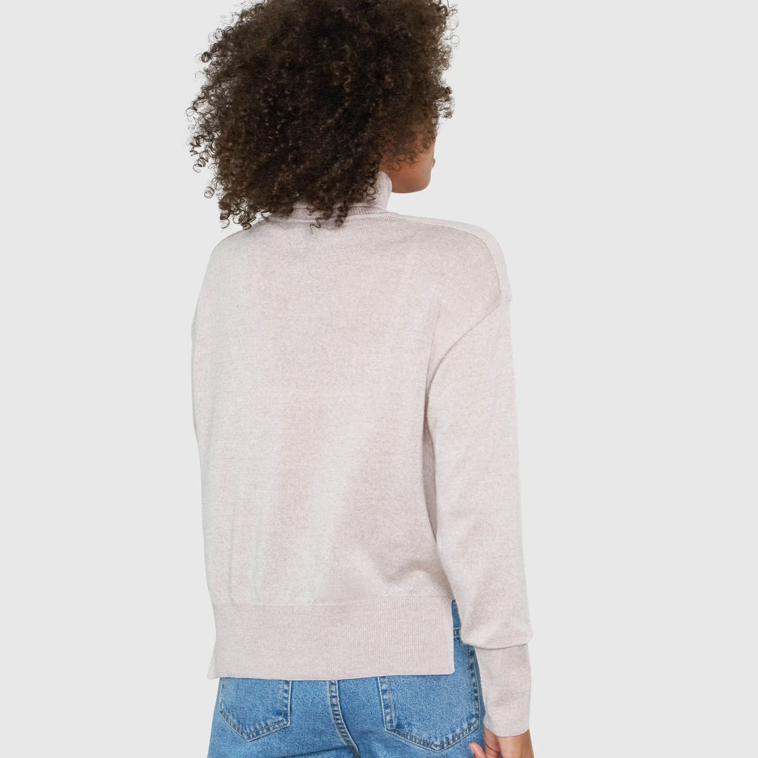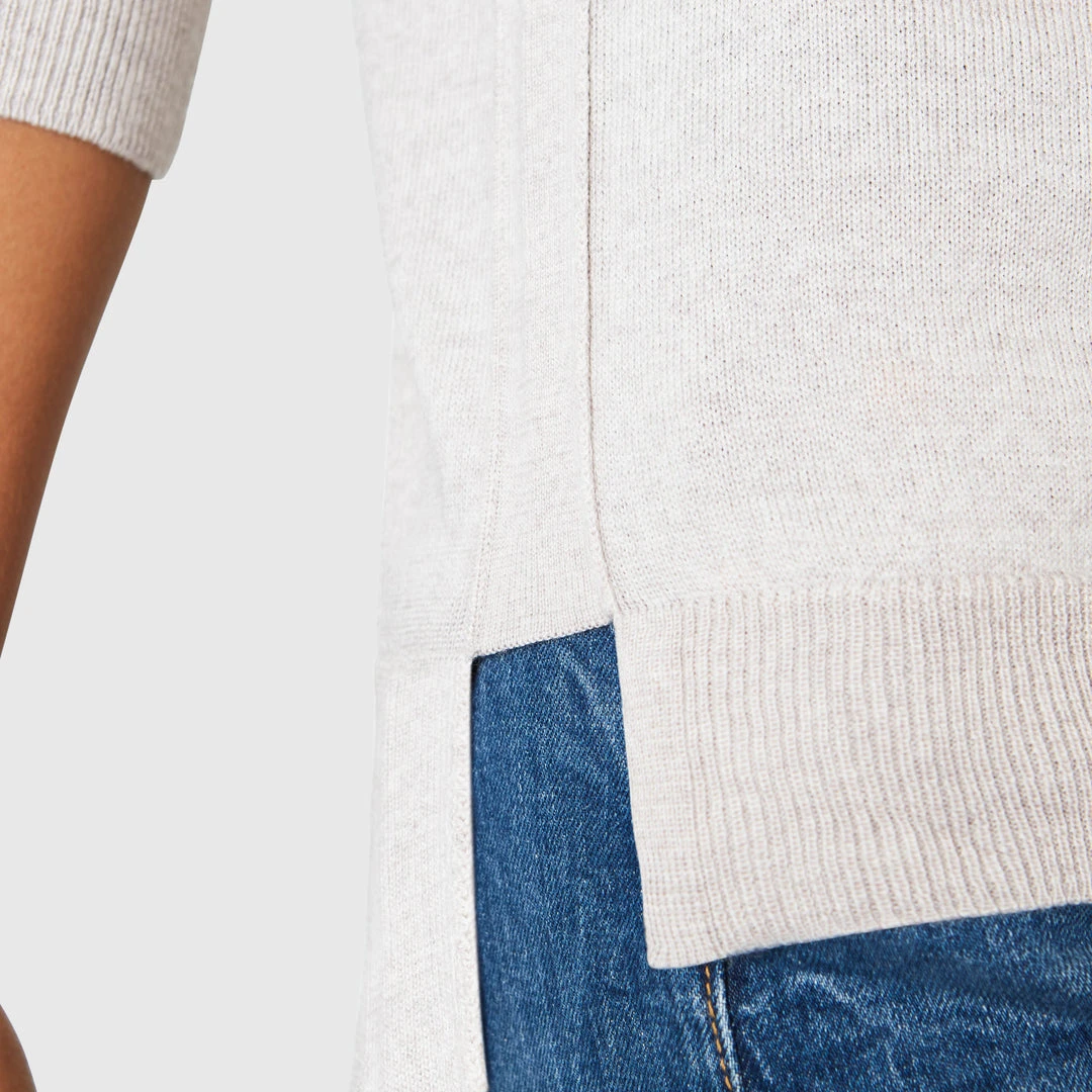 We’ve updated a chic essential to have the perfect relaxed fit, luxurious details, and endless uses. The yarn is pure Merino Wool from one of the most renowned mills in Italy. Merino has anti-bacterial natural properties, cools when is hot, and warms when is cold making it the perfect year-round yarn. The quality we have chosen can be machine washed, dried, and is Total Easy Care Woolmark certified. The sweater has a soft touch and beautiful finishings that make it both casual and elevated. The medium weight is ideal for layering or transitioning between seasons. Wrinkle and odor resistant, wear it in flight, out to dinner, or just to lounge around. Our model wears size 0.