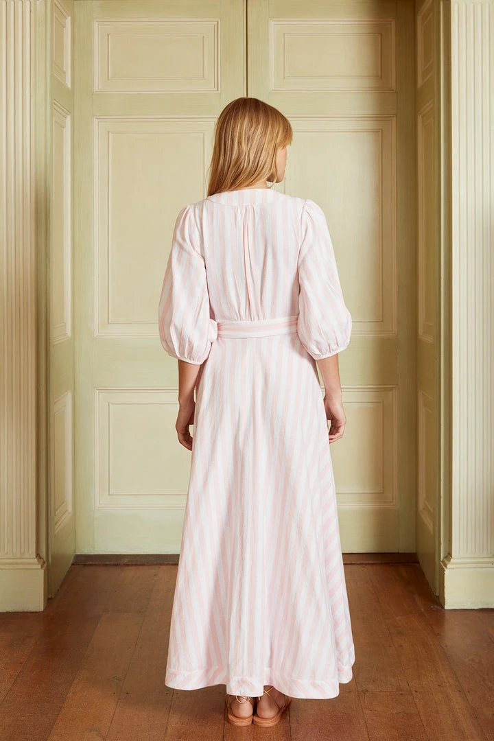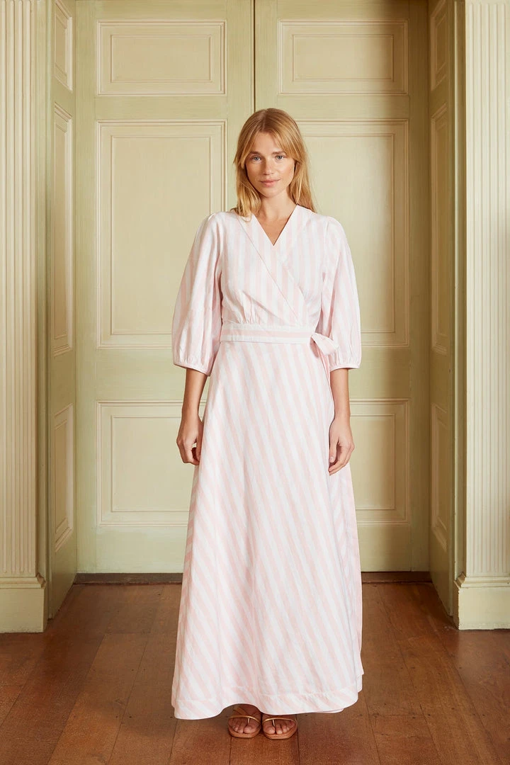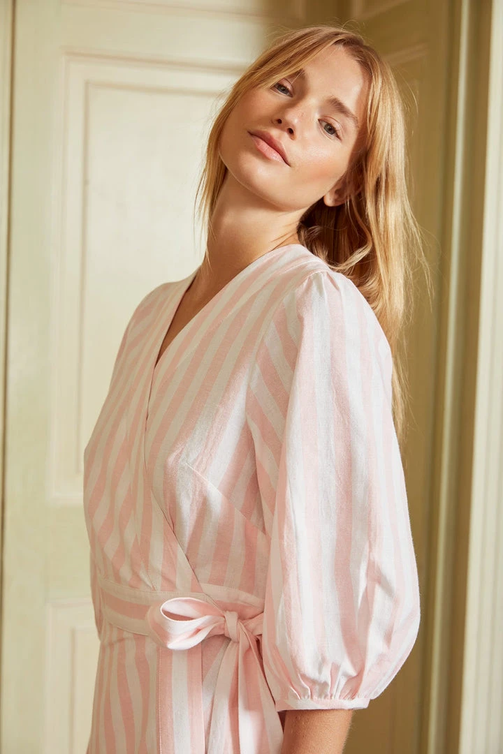 Seraphina THE BORDER WRAP DRESS | Pink & White Stripe